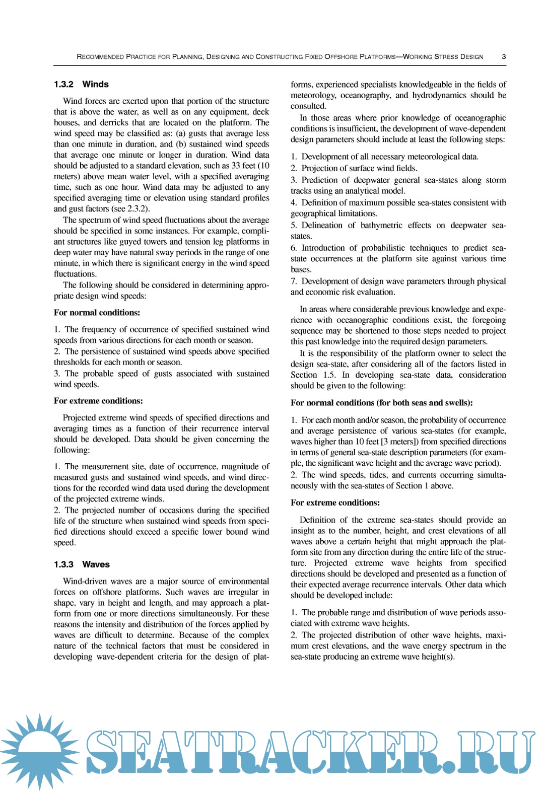 Recommended Practice for Planning, Designing and Constructing Fixed Offshore Platforms - Working Stress Design