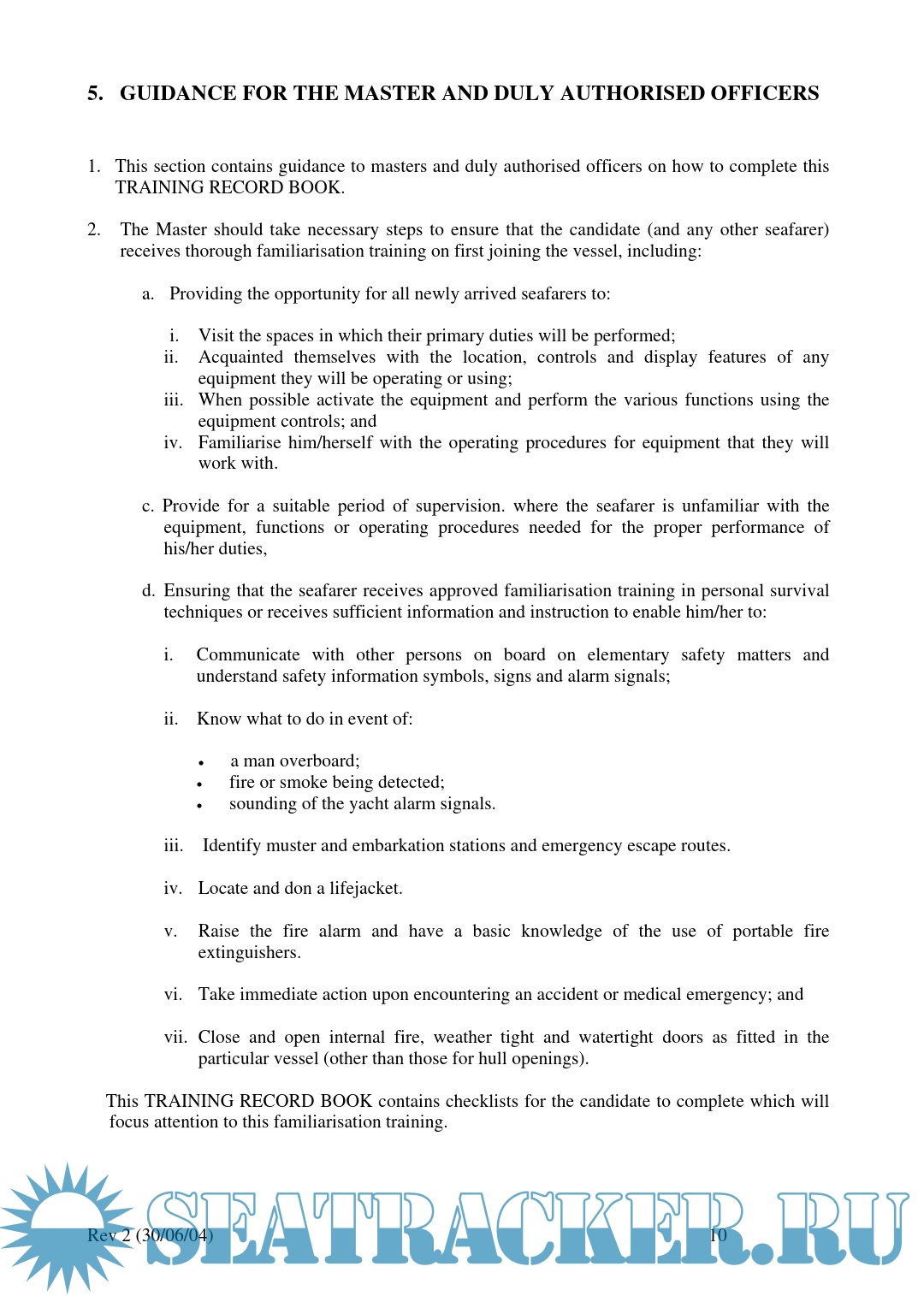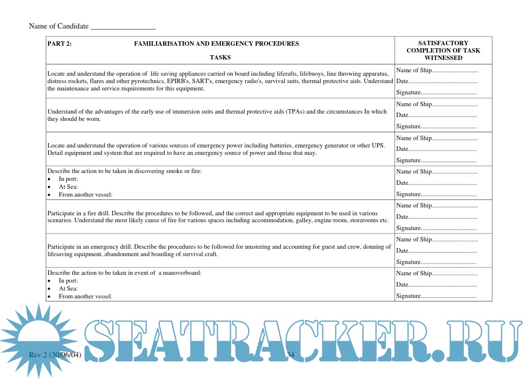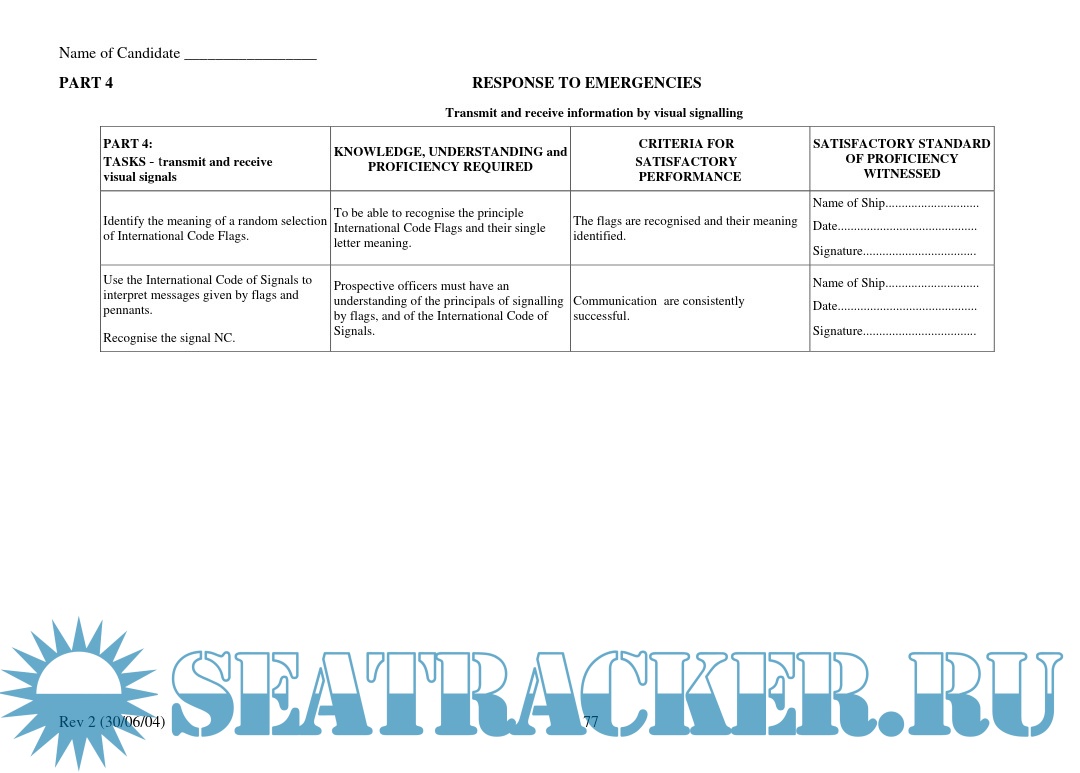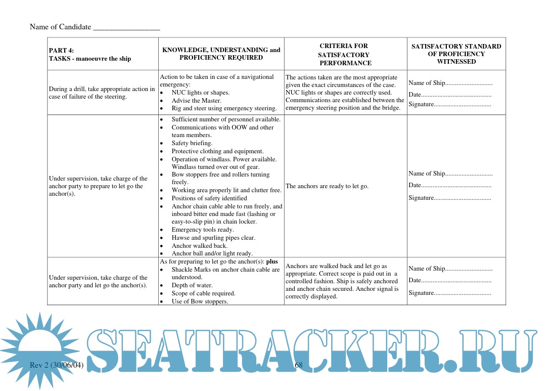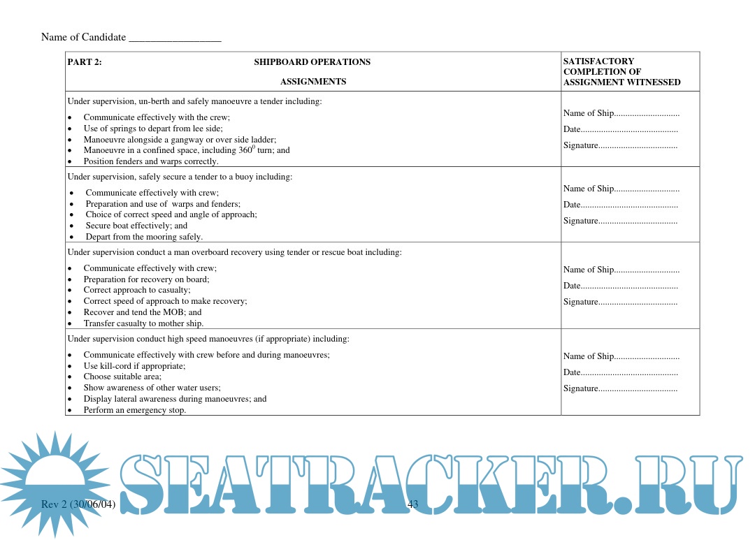Year: 2004 Language: English Author: Maritime and Coastguard Agency Genre: Manual Publisher: Maritime and Coastguard Agency Format: PDF Quality: eBook Pages count: 81 Description: IMPORTANT NOTICE TO THE MASTER AND DECK OFFICERS This TRAINING RECORD BOOK is approved by the MCA and must be fully completed with the Master or a duly authorised Officer verifying that the various ASSIGNMENTS and TASKS are completed by signing the appropriate sections. Guidance for the Master and Officers on the verification procedures are detailed in the Introduction Section.
