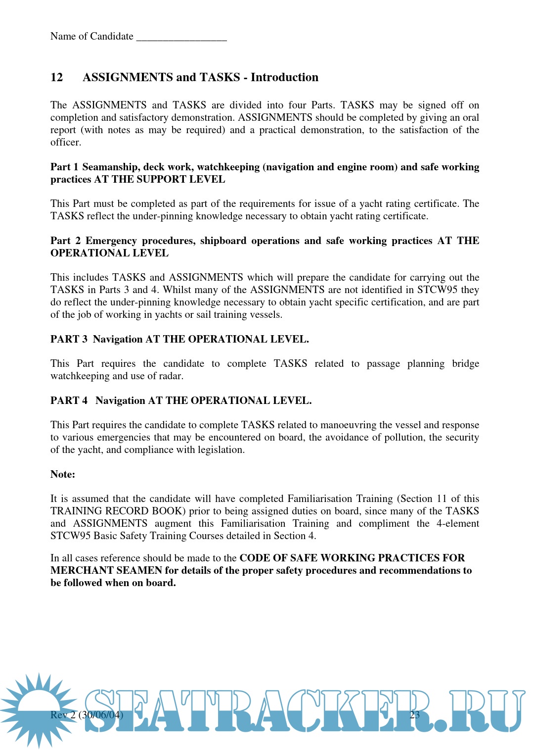 Training record book for yacht ratings