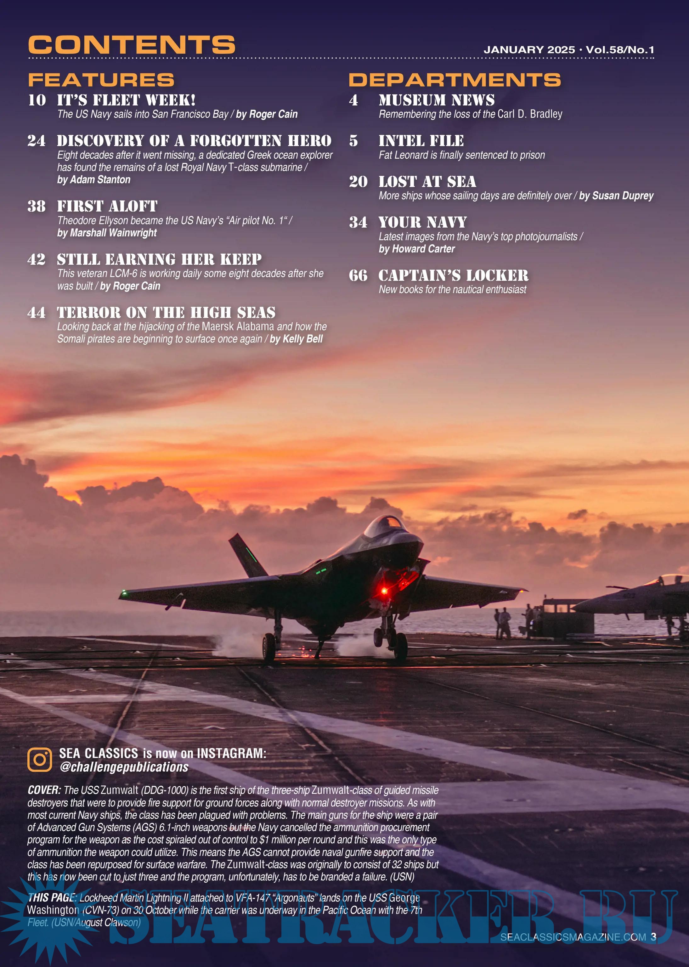 Year: 2025 Language: English Author: Susan Duprey (Editor) Genre: Magazine Publisher: Challenge Publications, Inc Edition: Vol.58 No.1 January, 2025 Format: PDF Quality: eBook Pages count: 68 Description: Sea Classics - Where History Sets Sail! Read about the world’s major sea battles and first-hand accounts from the men who fought and lived through them. From the early days of sailing vessels to the post-Cold War nuclear navies of today, Sea Classics has it all. Sea Classics presents authoritative and insightful articles on all aspects of nautical history - from the great battles of WWII, to the historic commanders and admirals, to the magnificent clipper ships, to the deadly U-Boats, to the Civil War ironclads. Every month, Sea Classics brings you these types of articles… and much, much more!