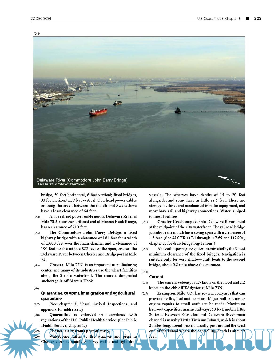 Description: The United States Coast Pilot® supplements the navigational information shown on NOAA nautical charts. The publication is continually updated and maintained from inspections conducted by NOAA survey vessels and field parties, corrections published in Notices to Mariners, information from other Federal agencies, State and local governments, maritime and pilots’ associations, port authorities, and concerned mariners.