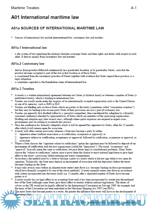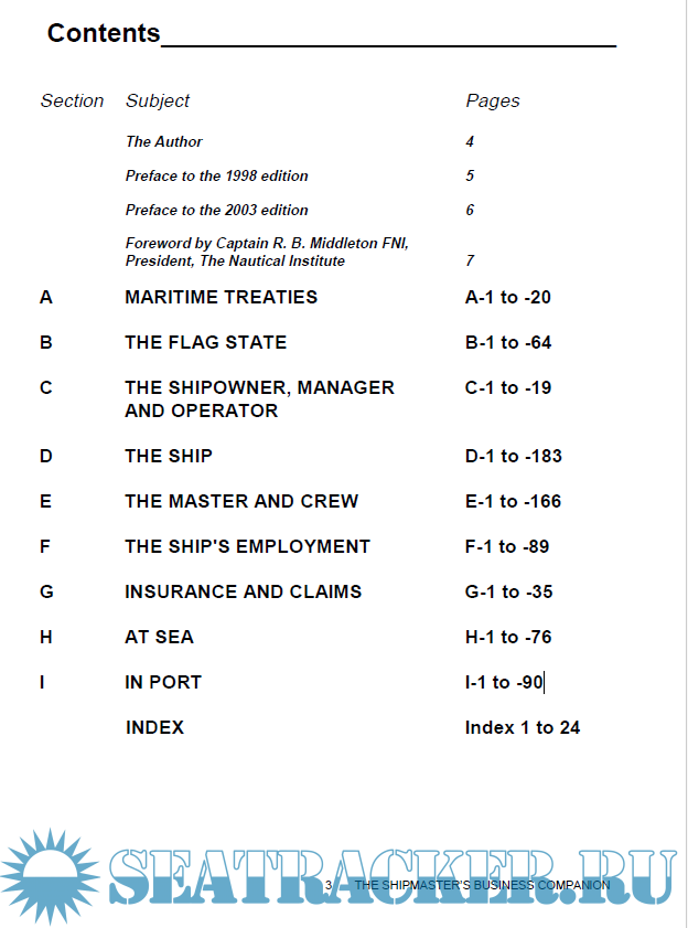 A MARITIME TREATIES A-1 to -20 B THE FLAG STATE B-1 to -64 C THE SHIPOWNER, MANAGER C-1 to -19 AND OPERATOR D THE SHIP D-1 to -183 E THE MASTER AND CREW E-1 to -166 F THE SHIP'S EMPLOYMENT F-1 to -89 G INSURANCE AND CLAIMS G-1 to -35 H AT SEA H-1 to -76 I IN PORT I-1 to -90