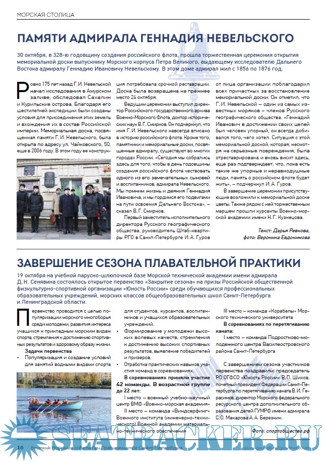 Описание: Целью информационного печатного издания является информационное освещение всех направлений морской деятельности Санкт-Петербурга: морской и речной транспортной деятельности, военно-морской деятельности, деятельности по эксплуатации портовой инфраструктуры, судостроения, деятельности по обеспечению экологической безопасности морского и речного судоходства, морского образования и науки, морского и речного туризма, парусного спорта и маломерного флота, деятельности по изучению, освоению и использованию Мирового океана и многое другое.