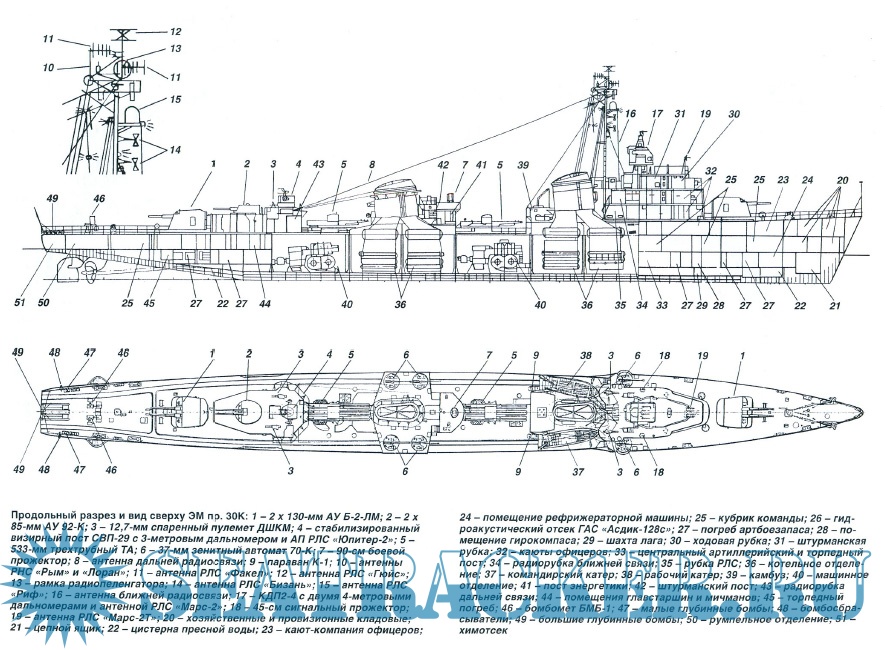 Описание: В этом выпуске “Морской коллекции” говорится о “Тридцатках” Тихоокеанского флота. При строительстве в состав штурманского вооружения эскадренных миноносцев проекта 30-бис входили: гирокомпас ‘Курс-3”, три магнитных компаса “КУС-9” (“КПИ”, “КПМ-3”), курсограф “23-1”, лаг “Гаусс-50” (“ЛГ-40”, “ЛГ-50”), эхолот НЭЛ-3, радиопеленгатор ”Бурун-К” (РПН-47-01).
