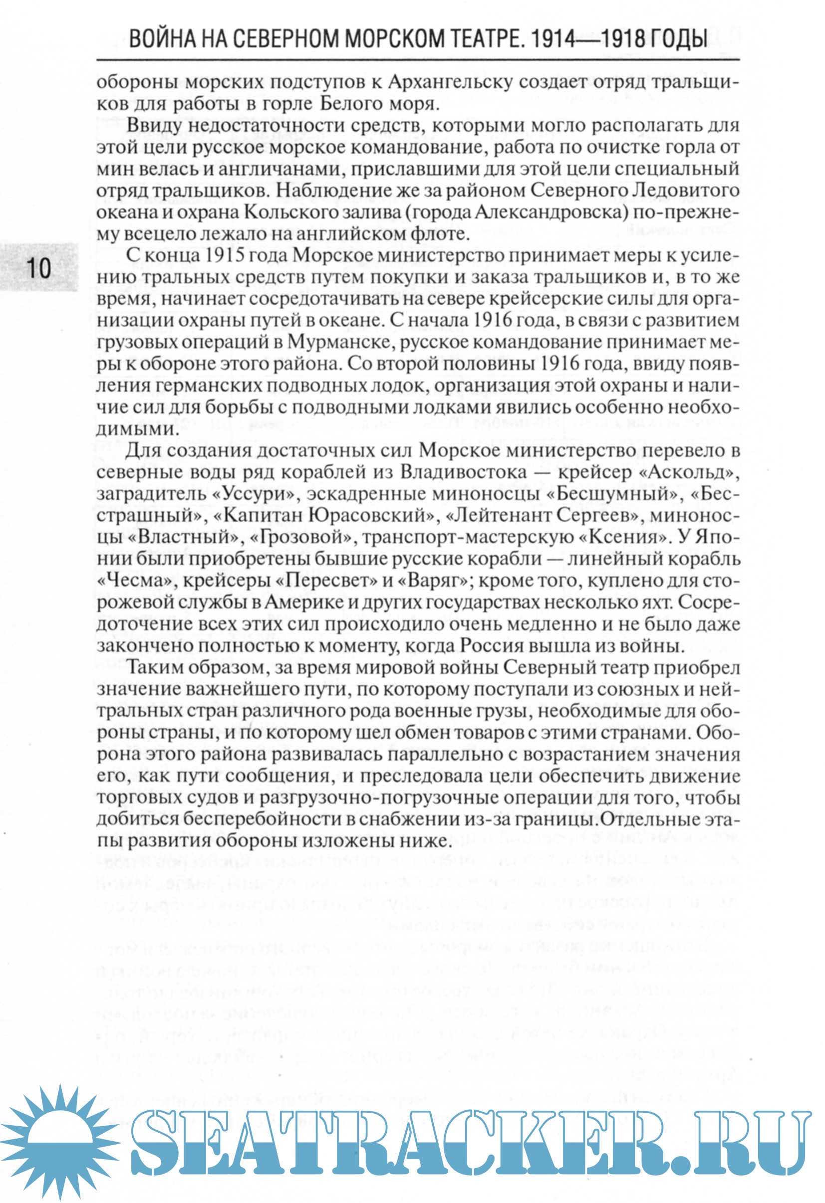 Описание: Сборник трудов различных авторов, посвященных организации и боевой деятельности Флотилии Северного Ледовитого океана в 1914-1918 годах, а также воспоминаний участников событий тех лет об условиях плавания и боевых действиях на Северном морском театре.