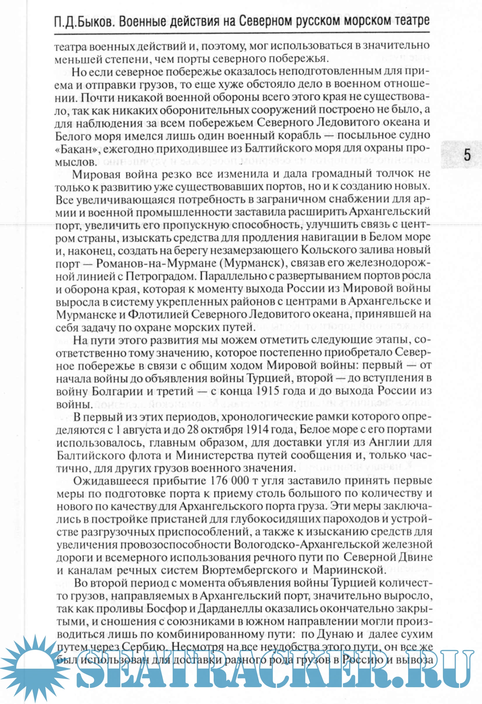 П.Д. Быков. Военные действия на Северном русском морском театре в империалистическую войну 1914-1918 годов