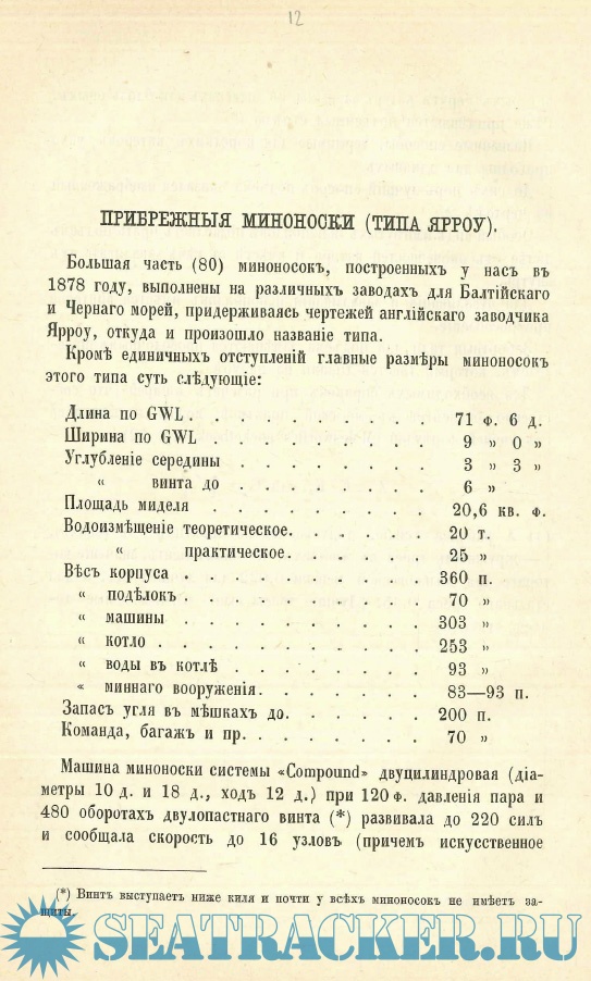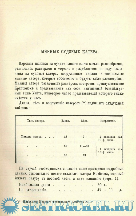 Описание: Так как специально минные суда не будут единственными в составе флотов и для многих целей необходимы корабли больших размеров, хотя бы и с сильным минным вооружением, то следовательно будет выгодно действовать против них минами для чего потребуются специально минные суда той или другой системы и вот причина почему во всех Флотах в большей или меньшей степени разрабатываются типы этих судов.