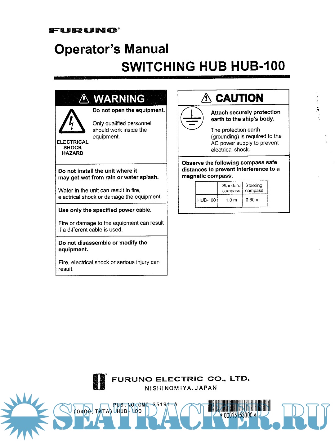 Description: Operator and installation manual for FURUNO Switching HUB-100 for FAR 2117/2817 Radars