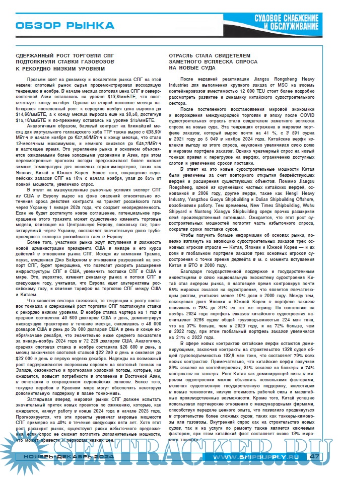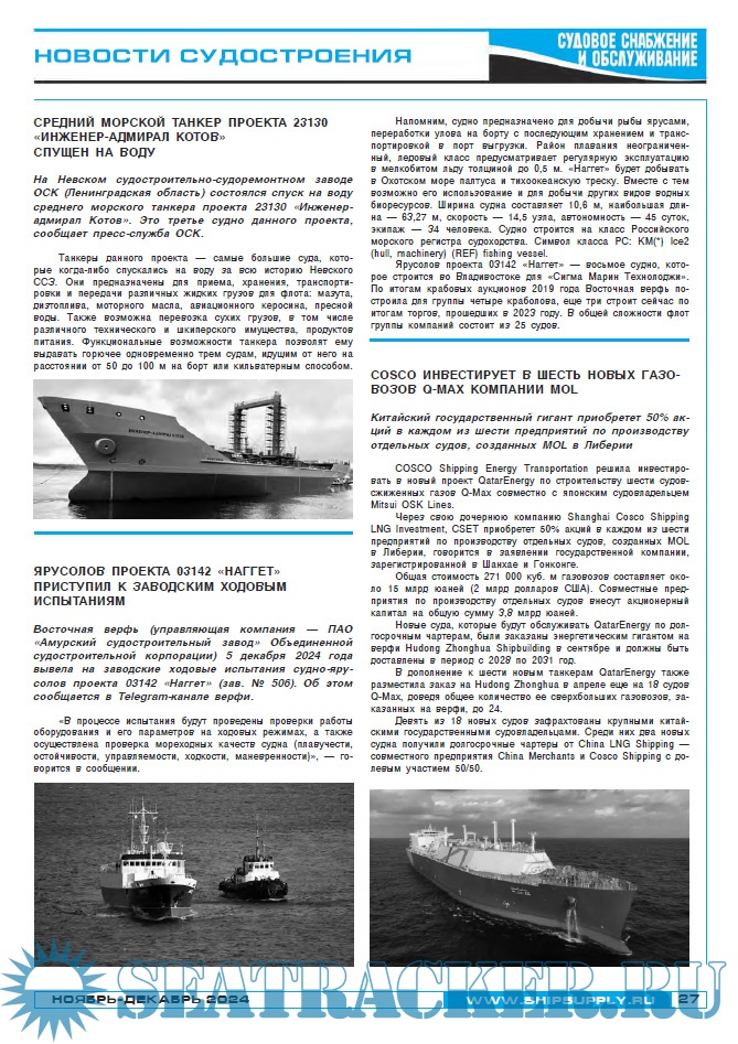 Судовое снабжение и обслуживание ноябрь - декабрь 2024