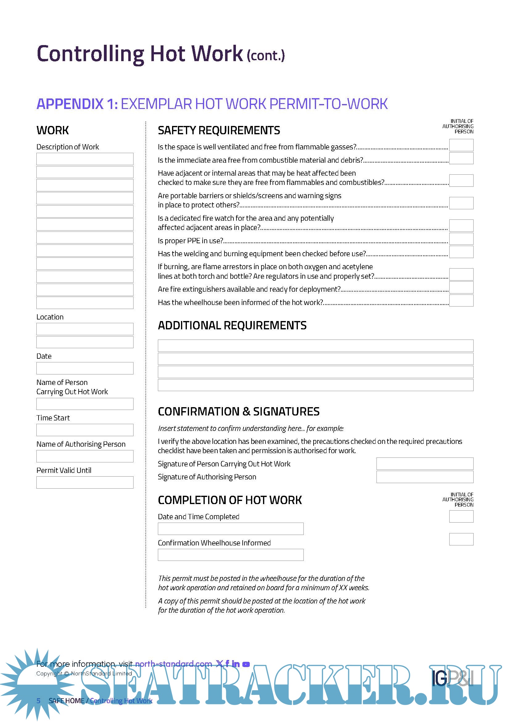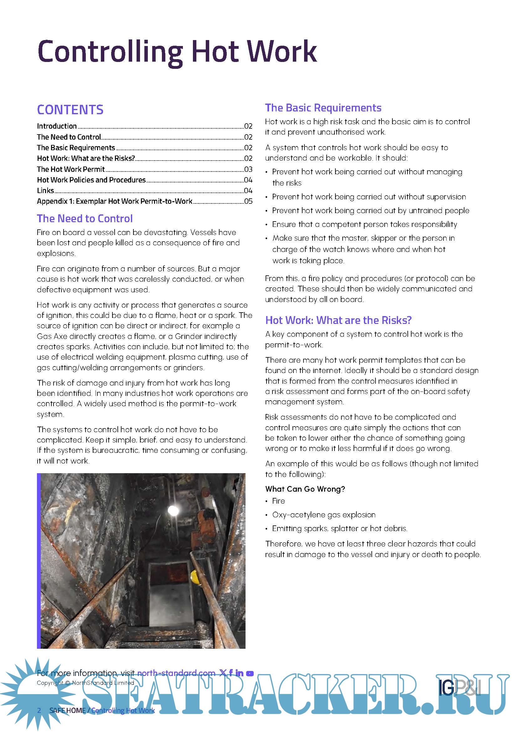 Fire on board a vessel can be devastating. Fire can originate from a number of sources, but a major cause is hot work that was carelessly conducted, or when defective equipment was used. The risk of damage and injury from hot work has long been identified. In many industries hot work operations are controlled. A widely used method is the permit-to-work system.
