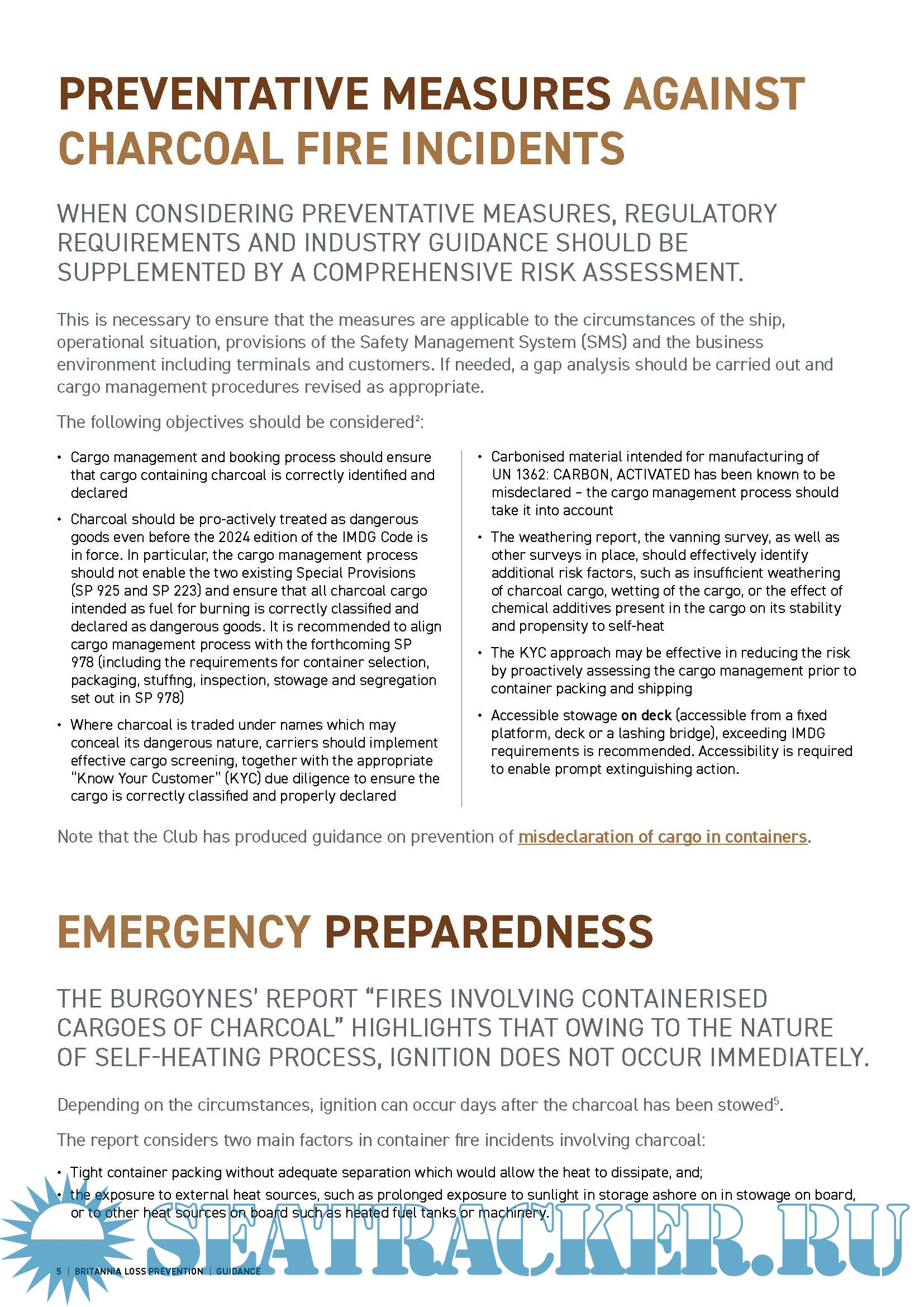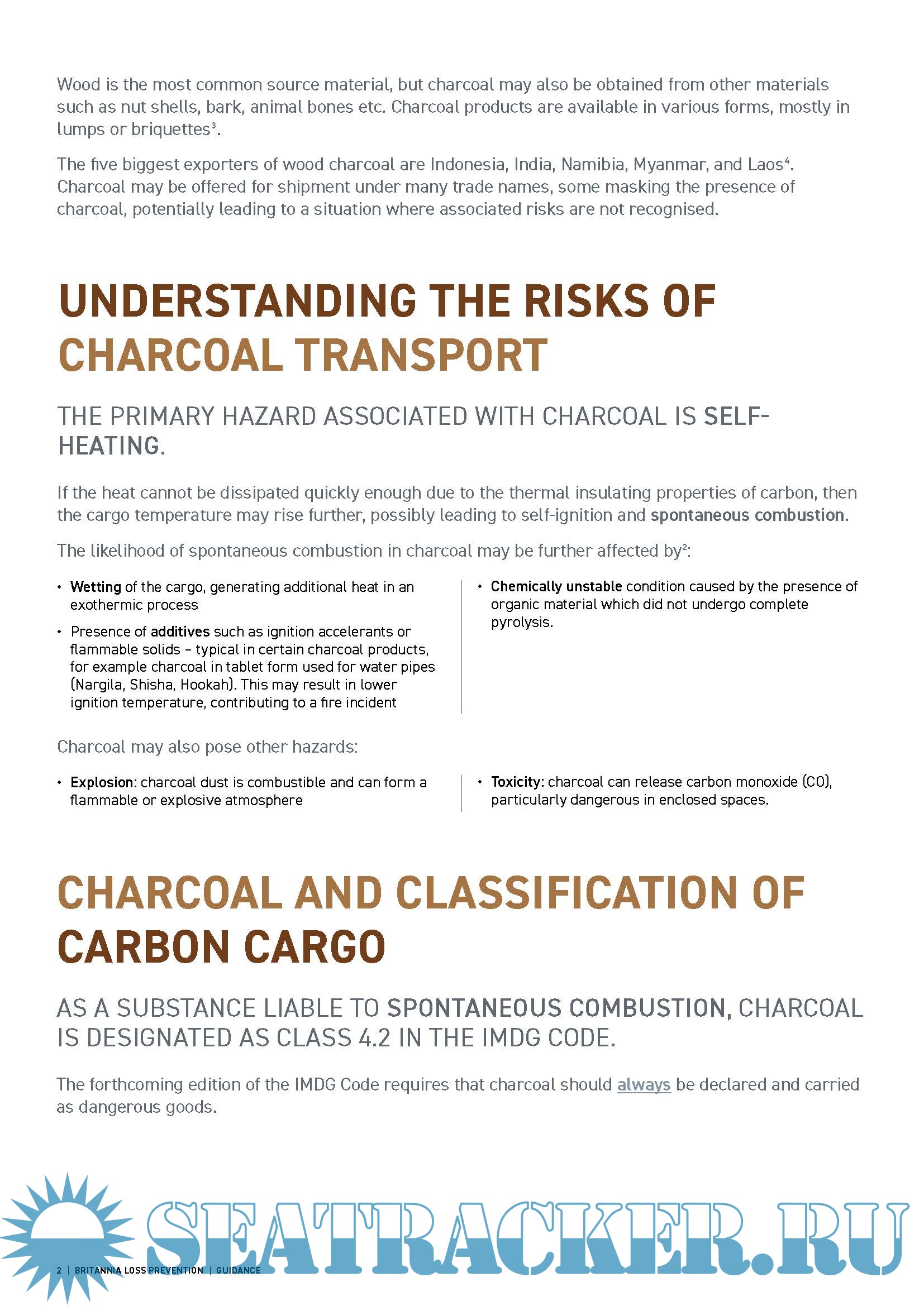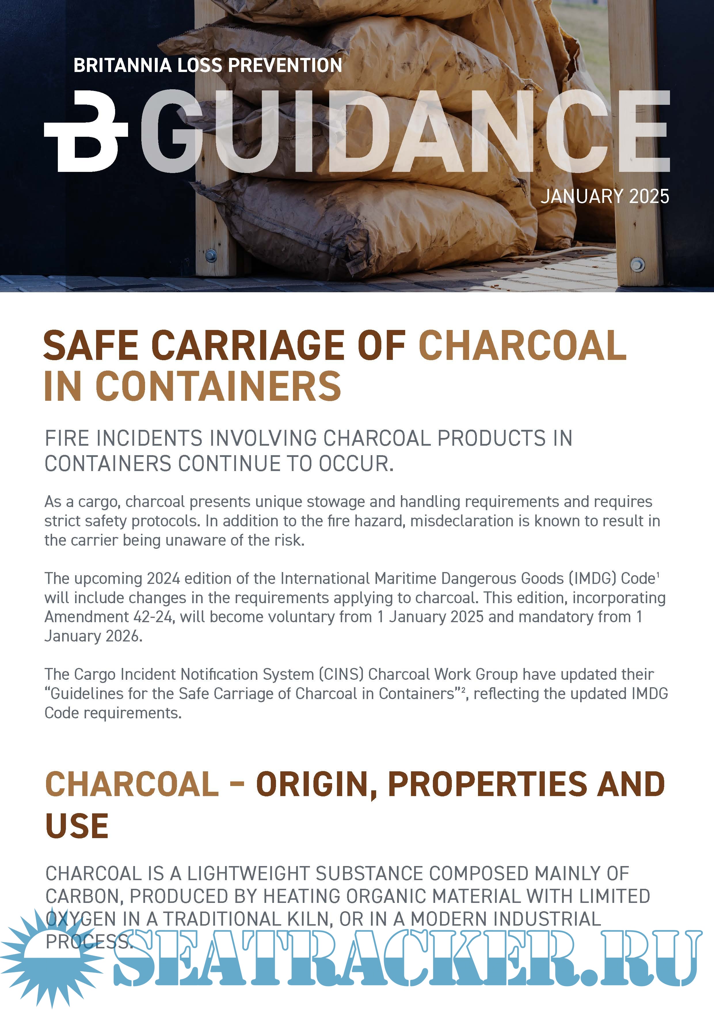 Description: Britannia Loss Prevention Guidance - Safe carriage of Charcoal in Containers.