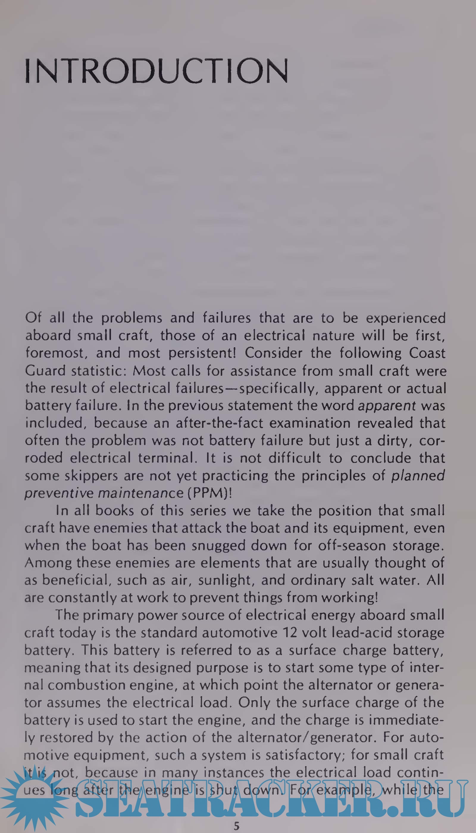 Of all the problems and failures that are to be experienced aboard small craft, those of an electrical nature will be first, foremost, and most persistent! Consider the following Coast Guard statistic: Most calls for assistance from small craft were the result of electrical failures-specifically, apparent or actual battery failure. In the previous statement the word apparent was included, because an after-the-fact examination revealed that often the problem was not battery failure but just a dirty, cor­roded electrical terminal. It is not difficult to conclude that some skippers are not yet practicing the principles of planned preventive maintenance (PPM)!