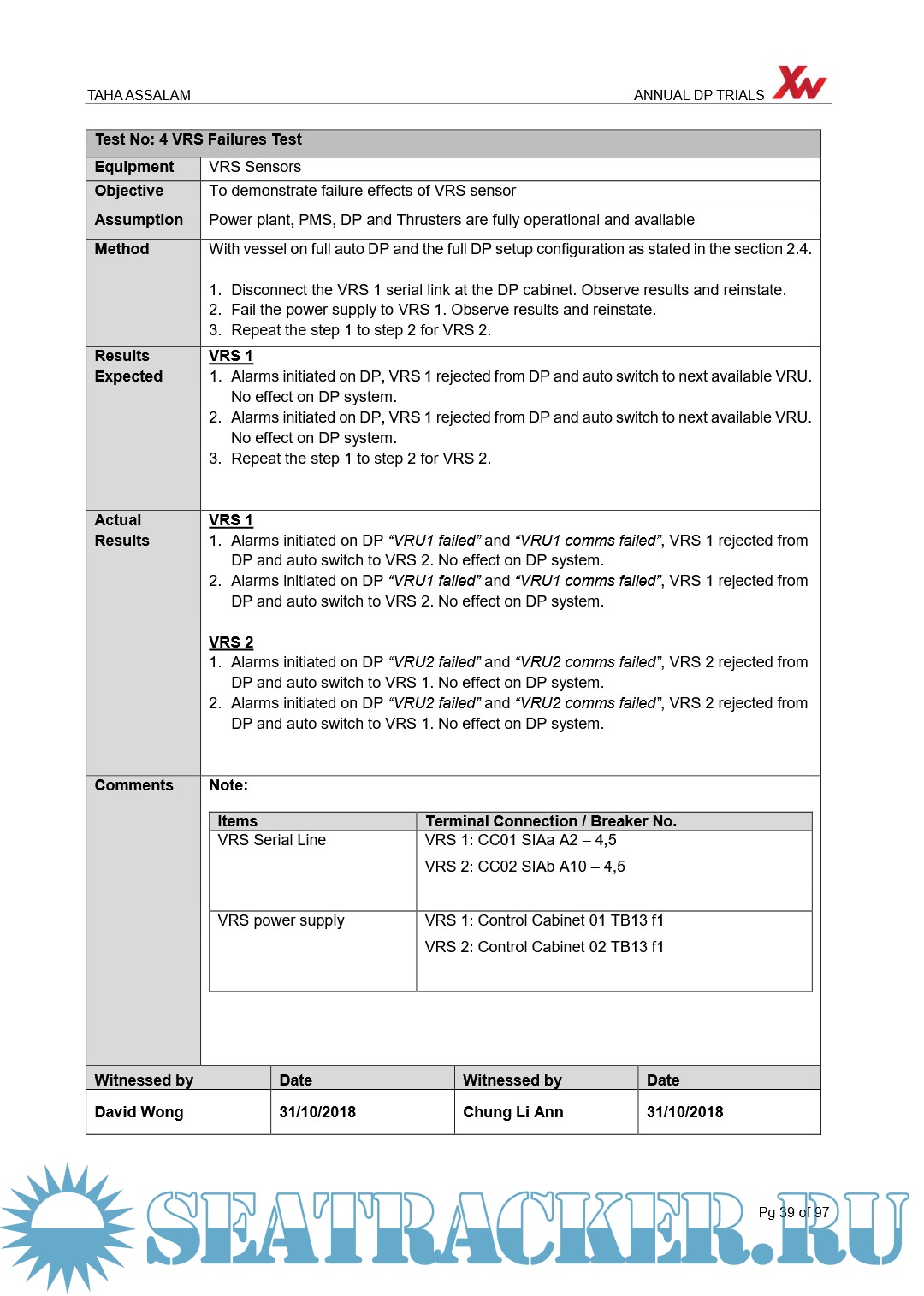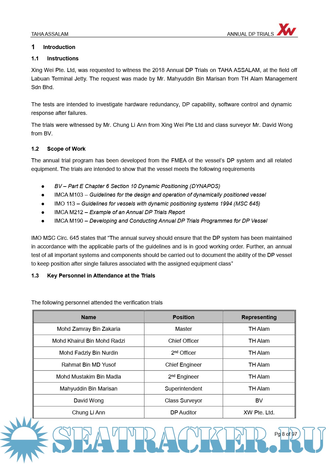 Description: Xing Wei Pte. Ltd, was requested to witness the 2018 Annual DP Trials on TAHA ASSALAM Offshore Support Vessel, at the field off Labuan Terminal Jetty. The request was made by Mr. Mahyuddin Bin Marisan from TH Alam Management Sdn Bhd. The tests are intended to investigate hardware redundancy, DP capability, software control and dynamic response after failures. The trials were witnessed by Mr. Chung Li Ann from Xing Wei Pte Ltd and class surveyor Mr. David Wong from BV.