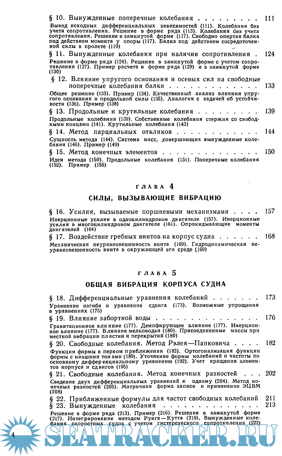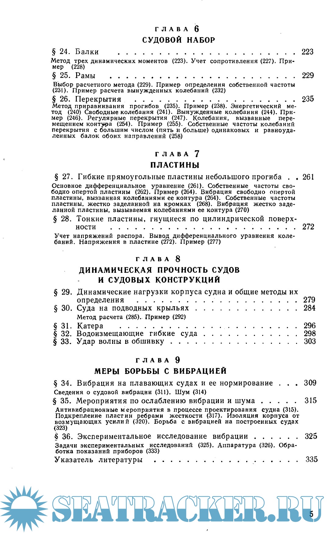Описание: Книга посвящена расчетам прочности судовых конструкций и вибрации под действием динамически прилагаемых нагрузок в основном применительно к судам внутреннего плавания. Изложена общая теория малых упругих свободных и вынужденных колебаний систем с одной и несколькими степенями свободы, а также призматических балок. Описаны причины, вызывающие вибрацию отдельных судовых конструкций и всего корпуса в целом, и методы расчета общей и местной вибрации. Приведены расчеты динамической прочности при ударе волн в корпус судна, меры борьбы с вибрацией, а также описывается аппаратура для экспериментального изучения вибрации.