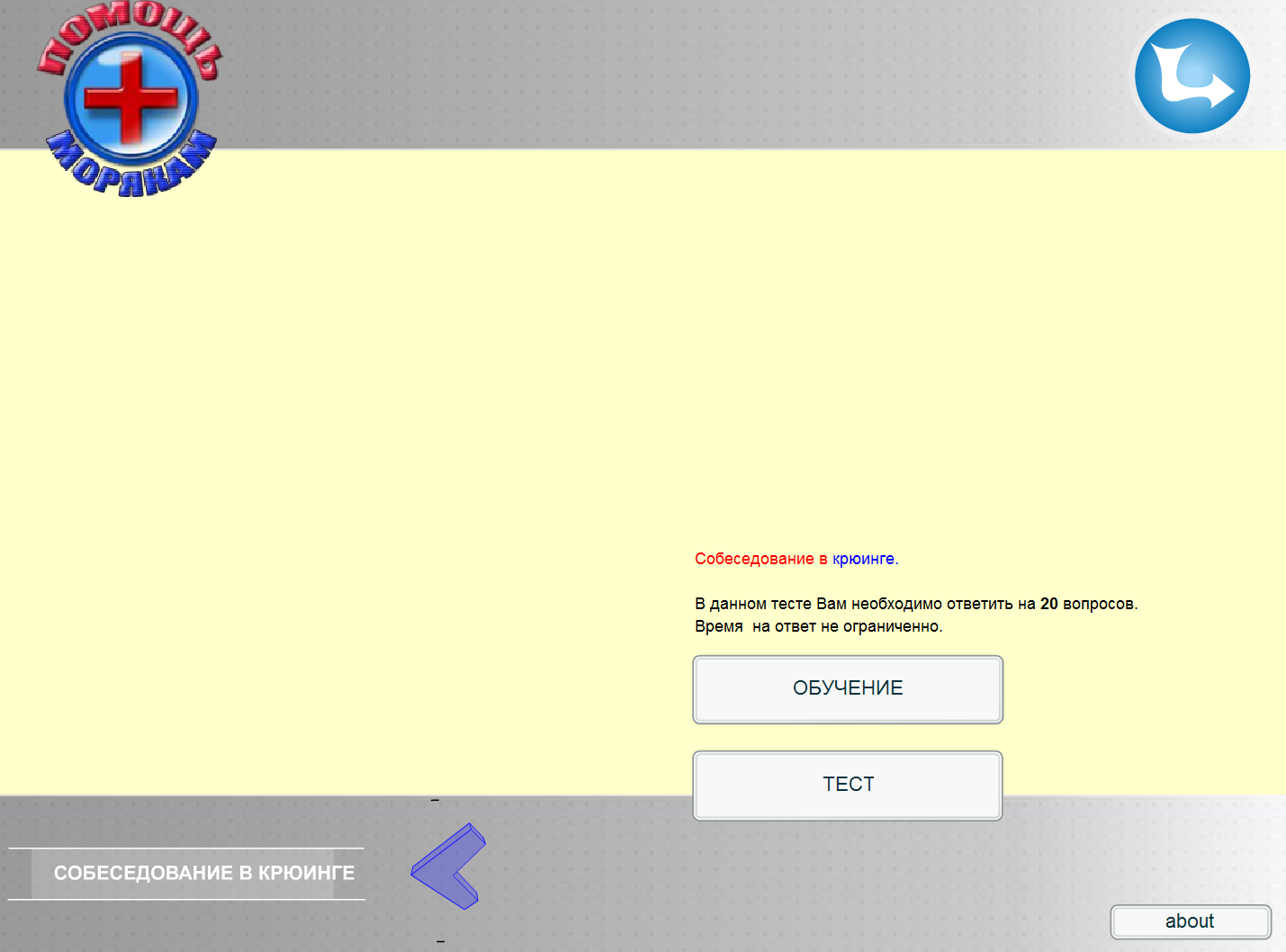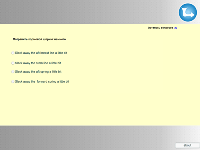 Описание: Данный тест создается для моряков, которые говорят на русском языке. В тесте заложены возможности, как обучения, так и тестирования.