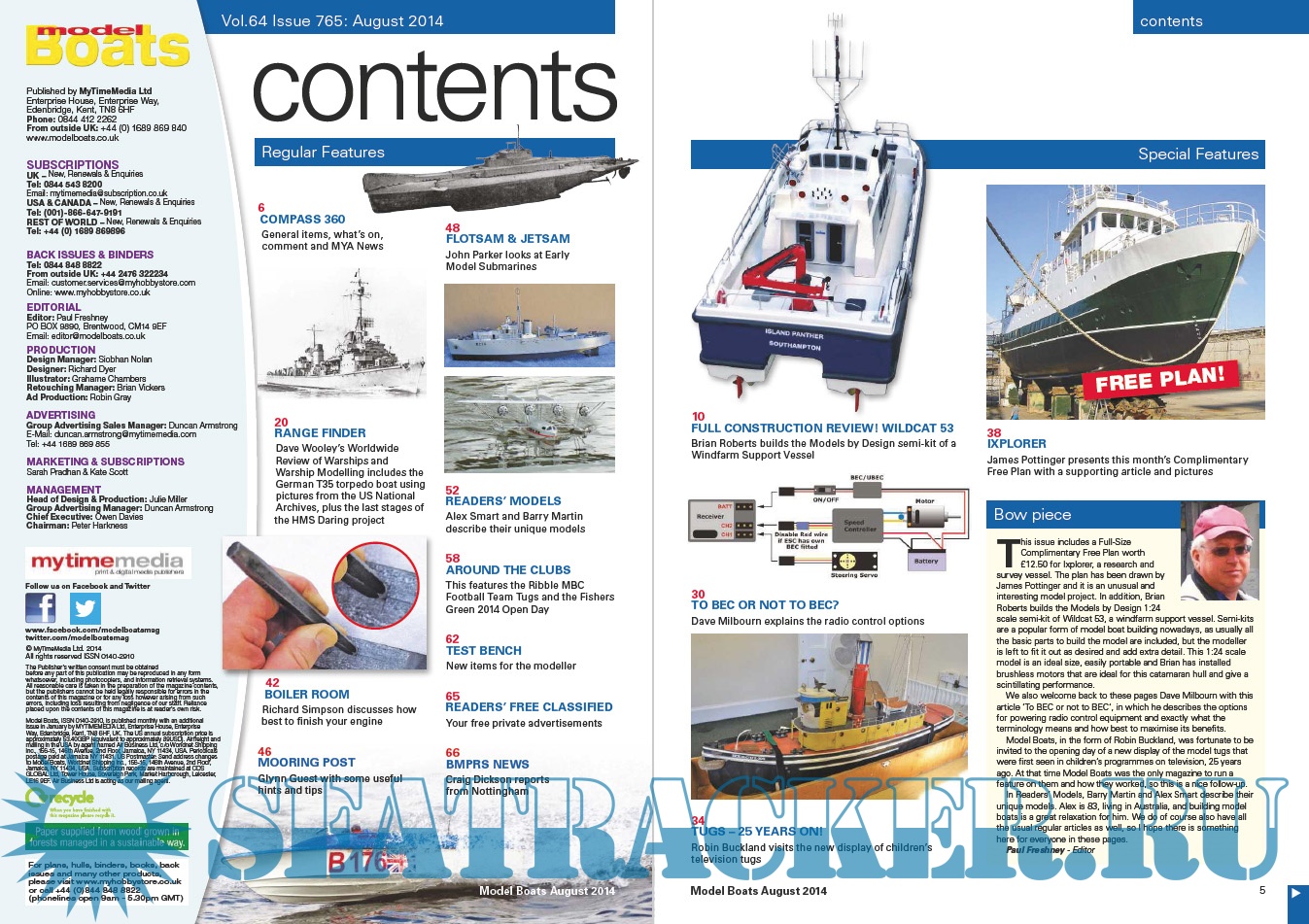 Description: Model Boats magazine is a practical and informative read for those with a love for the hobby. It covers the latest news and views from the various clubs and associations around the country, useful hints, tips and step by step guides for those interested in the art of constructing a model boat as well as tests and recommendations of new boats and tools. Floating along behind these are great special features examining in depth different models from narrowboat to destroyer!