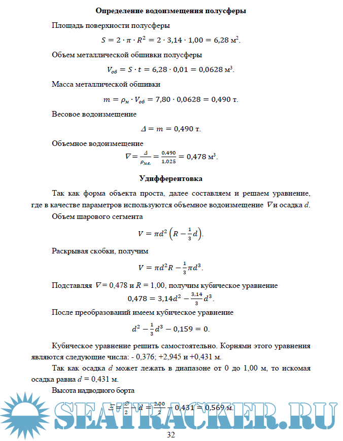 Приведены задания и примеры расчета параметров плавучести и начальной устойчивости.