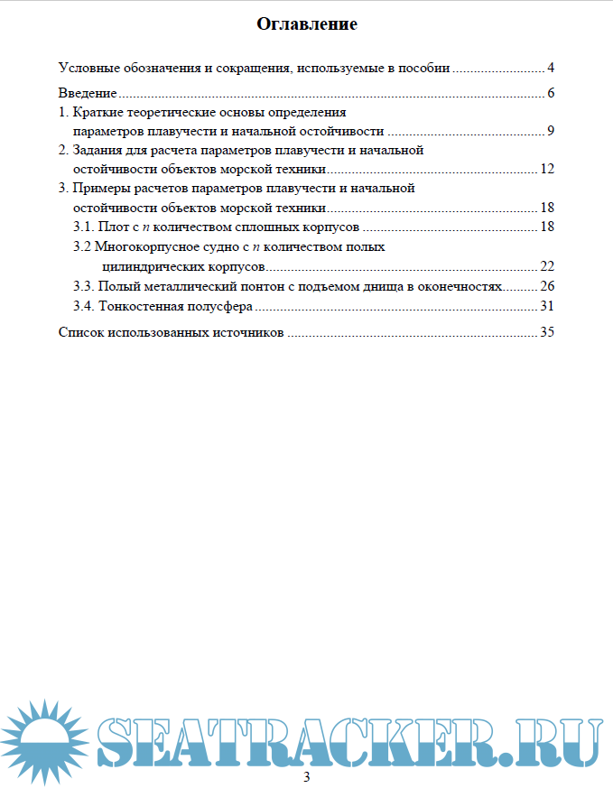 Описание: Содержит теоретические основы определения параметров плавучести и начальной остойчивости, необходимые для выполнения расчетно–графического задания.