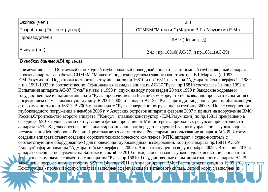 Автономный глубоководные аппараты пр.16810 "Русь" и пр.16811"Консул" (2007г.)