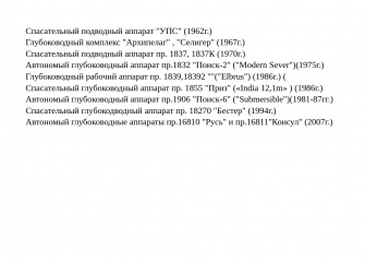 Описание: Приведены ТТХ, общие виды и краткое описание конструкции и строительства обитаемых спасательных и специального назначения аппаратов СССР и России.