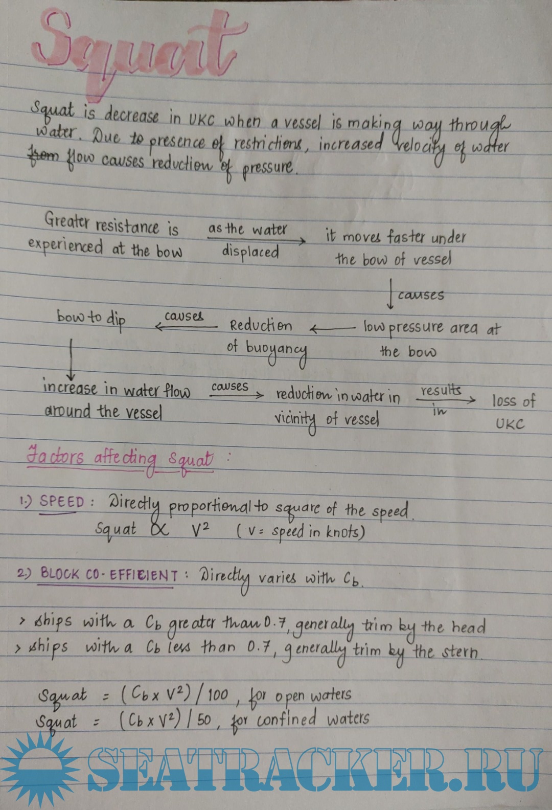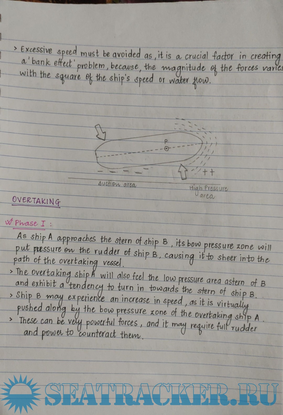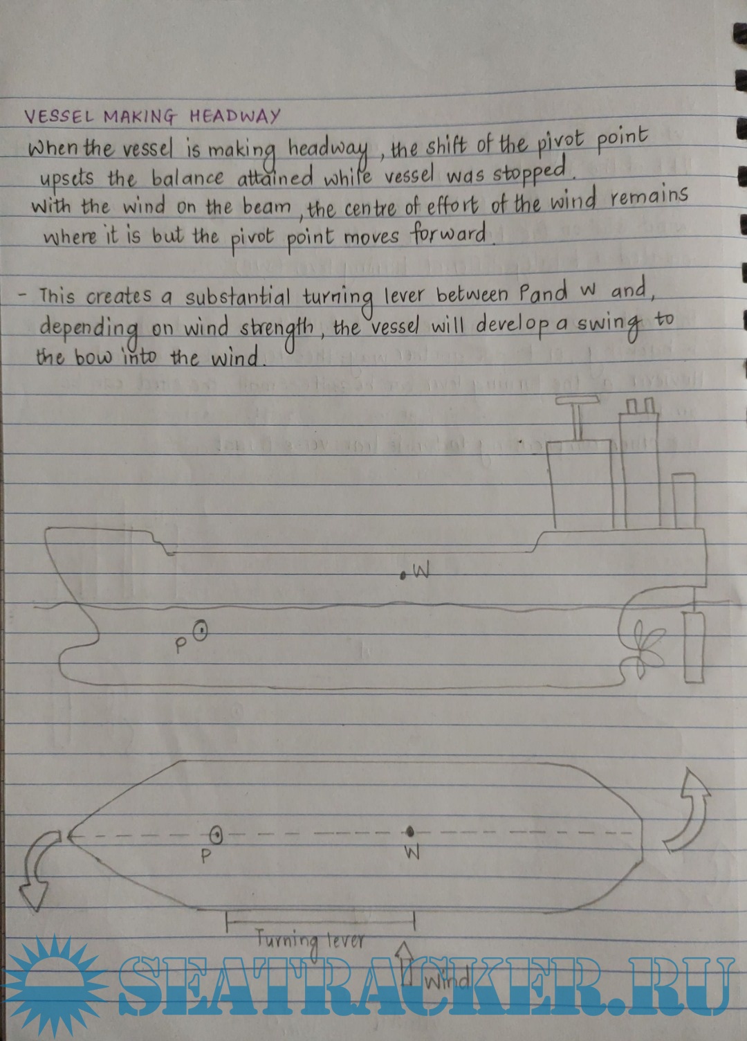 Detailed explanations of the forces acting on ships.