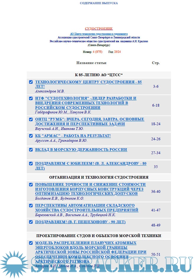Описание: В журнале публикуются статьи ученых и специалистов на темы, связанные с проектированием, постройкой, ремонтом, модернизацией и утилизацией военных кораблей, гражданских судов. Регулярно выходят в свет работы, посвященные организации и технологии судостроительного производства, проектированию верфей и доков, новым судостроительным материалам. Большое внимание уделяется вопросам судовой энергетики и новым разработкам в области морской техники.