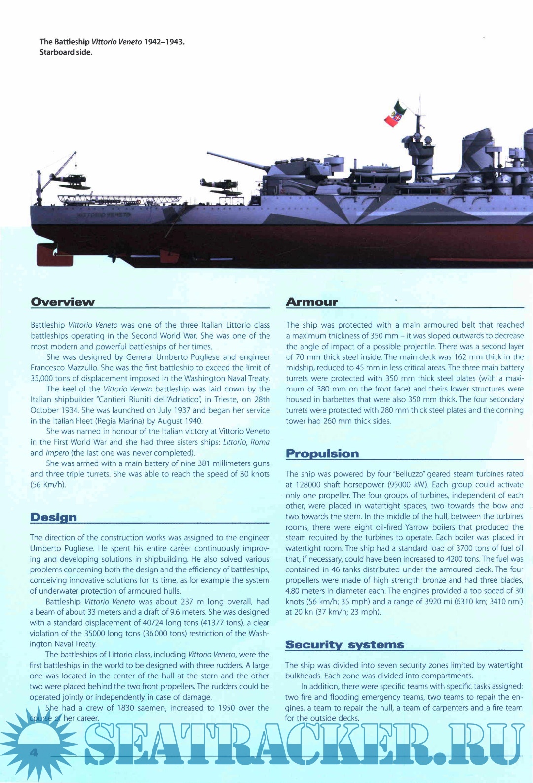 Year: 2017 Language: English Author: Cestra C. Genre: Historical Publisher: Kagero Format: PDF Quality: eBook Pages count: 84 Description: Battleship Vittorio Veneto was one of three Italian Littorio class battleships operating in the Second World War. She was one of the most modern and powerful battleships of her times. She was designed by General Umberto Pugliese and engineer Francesco Mazzullo., and she was the first battleship to exceed the limit of 35,000 tons of displacement imposed in the Washington Naval Treaty. The keel of the Vittorio Veneto battleship was laid down by the Italian shipbuilder Cantieri Riuniti dell’Adriatico in Trieste on 28th October 1934. She was launched in July 1937 and began her service in the Italian Fleet (Regia Marina) by August 1940. She was named in honor of the Italian victory at Vittorio Veneto in the First World War and she had three sister ships: Littorio, Roma, and Impero (the last one was never completed). She was armed with a main battery of nine 38- millimeter guns and three triple turrets. She was able to reach a speed of 30 knots (56 Km/h).