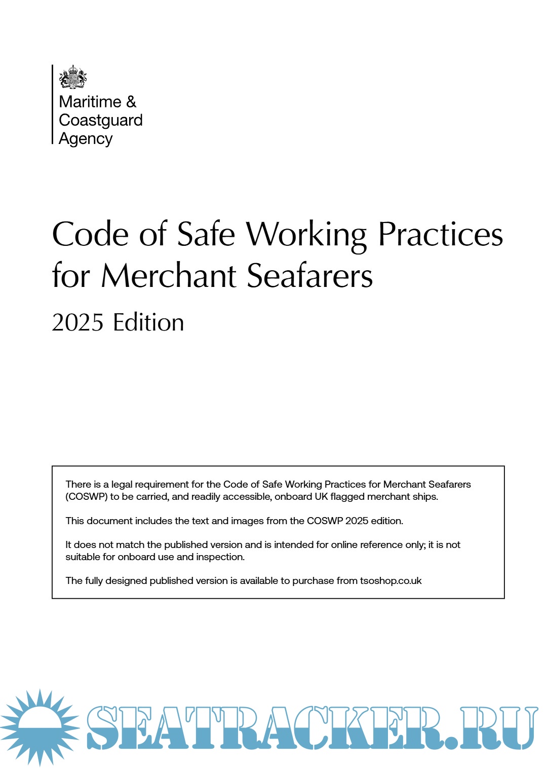 The COSWP 2025 edition is a mandatory reference on UK-flagged vessels and is highly recommended for use across the global merchant fleet. It is an essential resource for maintaining a safe working environment at sea.For Online Reference Only, It is not suitable for onboard use and inspection