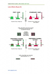 Further sections explain charted areas and limits, hydrographic terms, and the use of lights, buoys, beacons, and fog signals for safe navigation. Modern technologies are addressed through detailed explanations of radar, radio, and electronic position-fixing systems. The guide concludes with a comprehensive index of U.S. and international abbreviations and a complete overview of the IALA Maritime Buoyage System.