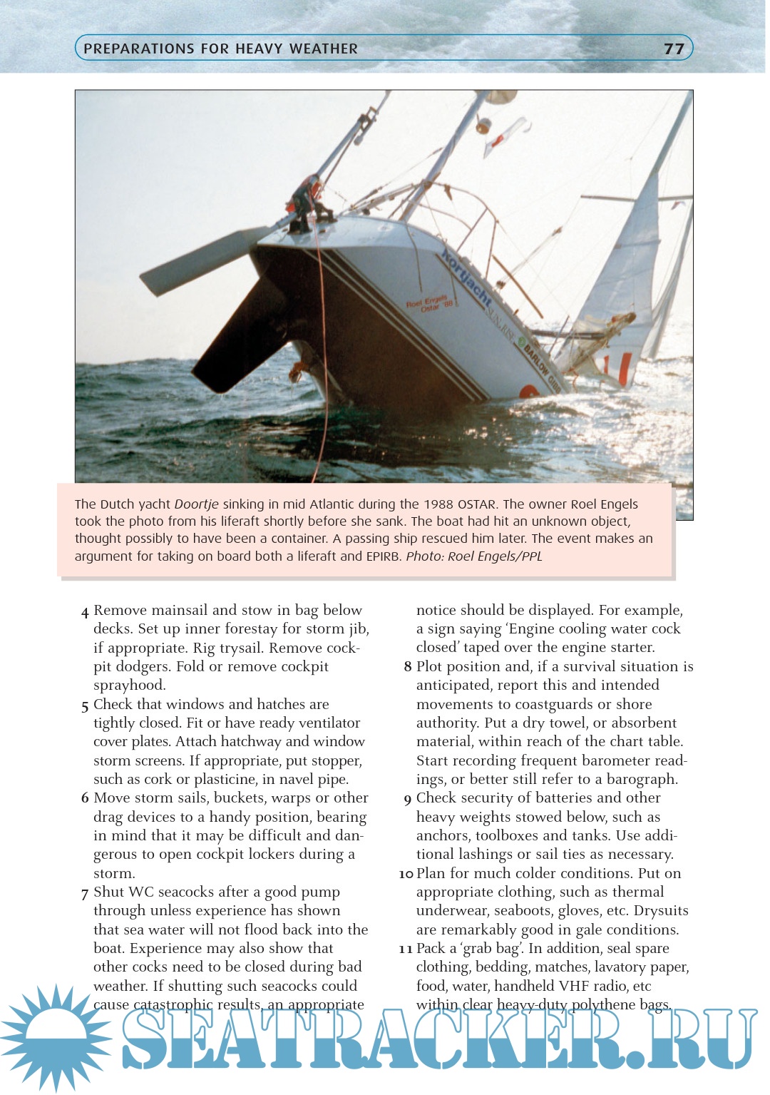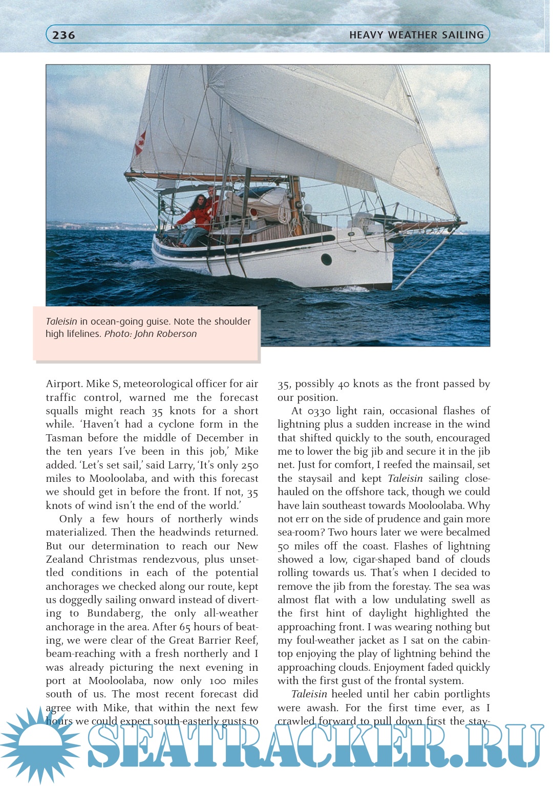 The thirtieth-anniversary edition of this classic includes sections on parachute sea anchors and drogues, crew fitness, and management advice, and new material on meteorology and on seasick remedies. Ample advice from great sailors such as Oiln Stephens, Robin Knox-Johnston, and Val Haigh is augmented by new material by Dag Pike and Mike Golding. Also new in this edition is a section on multihulls in heavy weather.