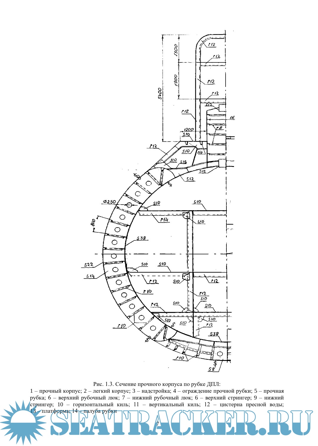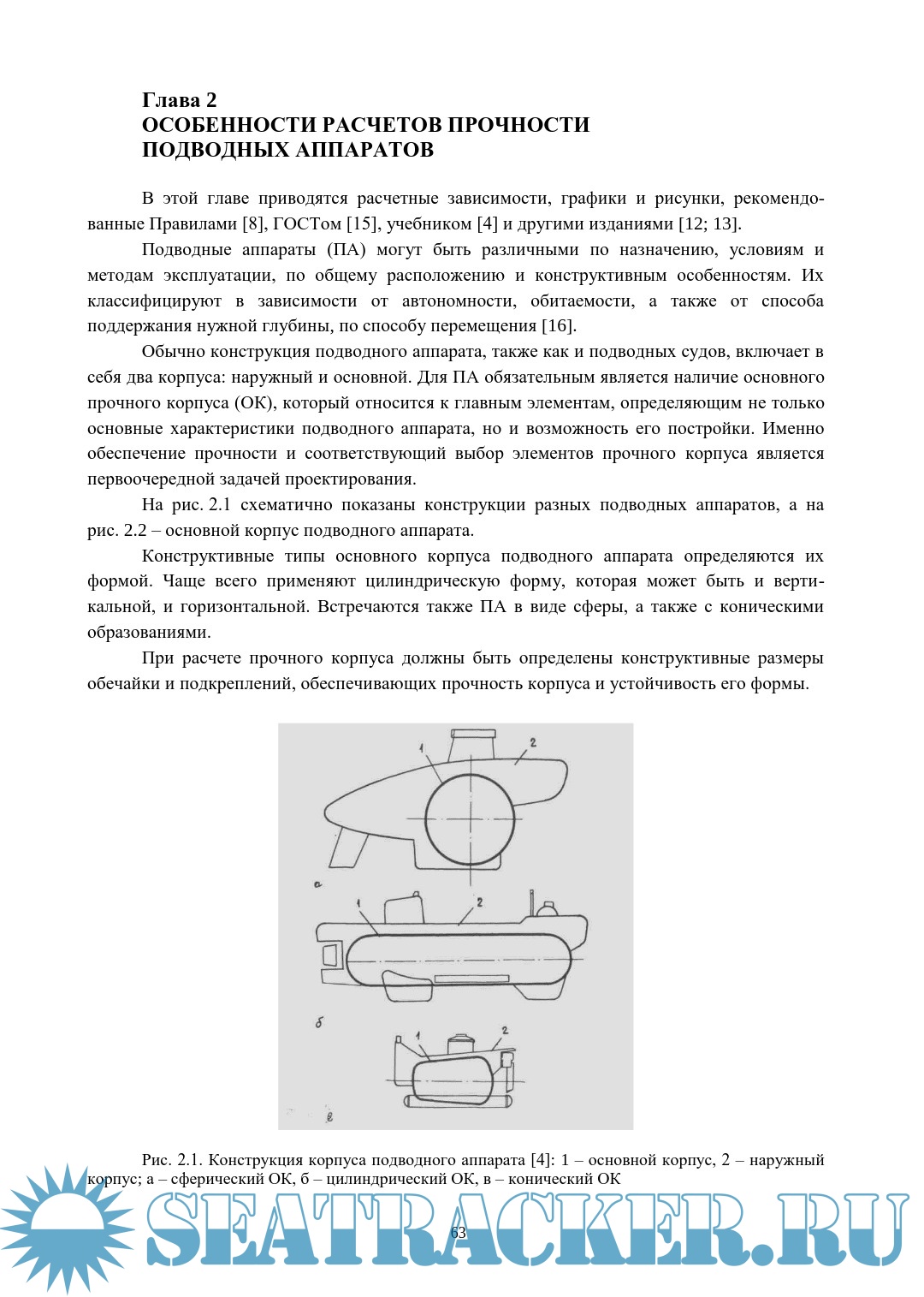 Введение. Принципы расчета прочности конструкций корпуса подводных лодок. Конструктивные особенности ПЛ, материалы и расчетные предпосылки. Расчетные нагрузки. Расчет прочного корпуса по напряжениям. Нормирование прочности корпуса по напряжениям. Практический расчет прочного корпуса. Обжатие прочного корпуса на глубине. Расчет прочного корпуса на устойчивость. Определение действительной критической нагрузки. Определение размеров основных элементов прочного корпуса. Проверочный расчет прочного корпуса. Выбор размеров и расчет прочности поперечной переборки. Расчеты прочности элементов цистерн подводных лодок. Настилы палуб внутри прочного корпуса. Особенности расчетов прочности подводных аппаратов. Расчетные предпосылки. Расчетные зависимости. Проверочные расчеты прочности основного корпуса. Определение критического давления. Особенности проектирования элементов основного корпуса. Расчеты прочности цилиндрических обечаек. К расчету выпуклых днищ прочного корпуса. Упрощенная схема предварительного выбора элементов прочного корпуса. Заключение. Список литературы.