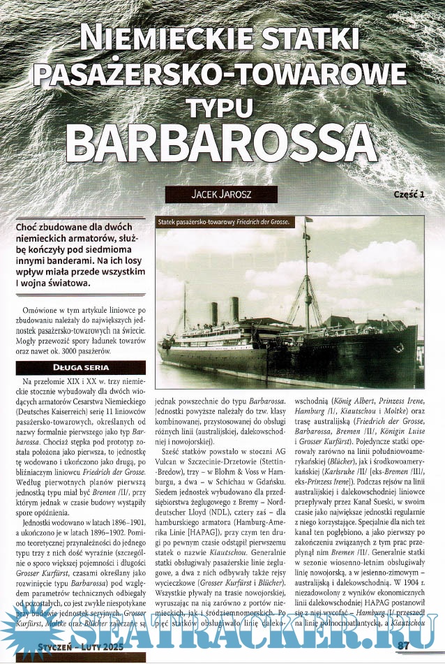 Год выпуска: 2025 Язык: Польский Автор: группа авторов Жанр: Периодическое издание (журнал) Издание: 2025-01-02 Формат: PDF Качество: Изначально компьютерное (eBook) Количество страниц: 100 Описание: Польский морской журнал. Издается с 1996 года, первоначально как ежеквартальный. С 1999 года издается раз в два месяца, а с 2007 года-как ежемесячный. Первоначально назывался Morza Statki i Okrety, в 2006 году переименован в Morze Statki i Okrety. С 2004 года полностью цветной (ранее только вставки). В 2008 году стали издаваться специальные выпуски, первоначально нерегулярные. С 2014 года выпускается как обычное издание и специальное издание, с непрерывной нумерацией.