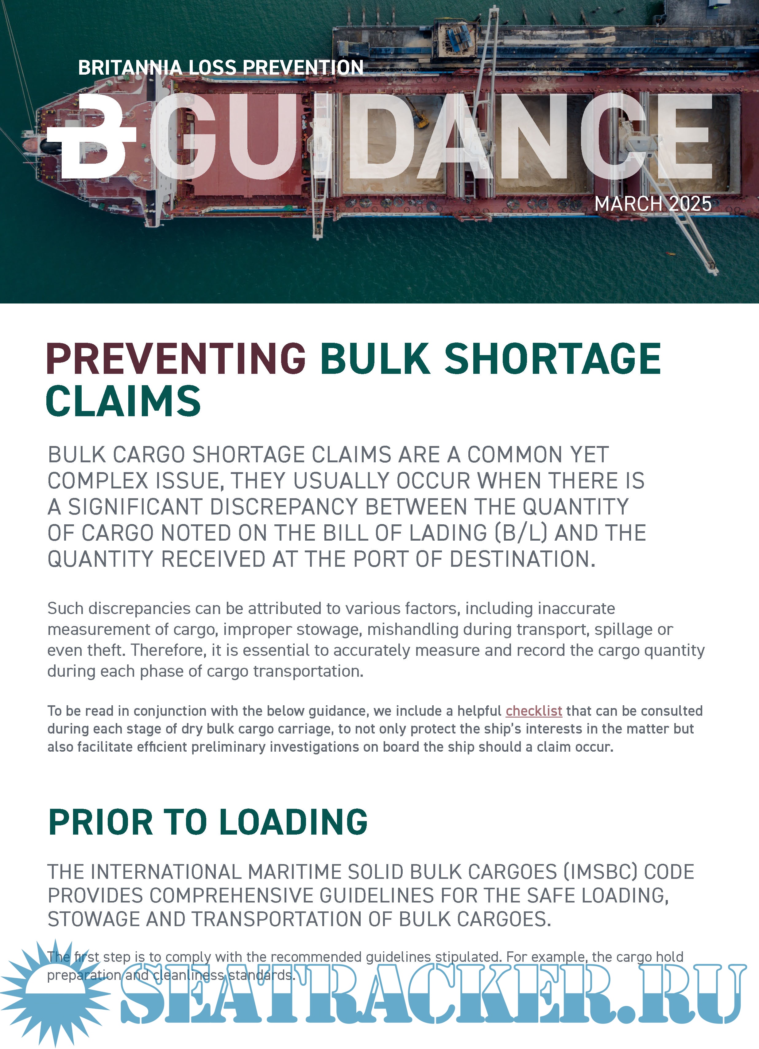 1. Preventing Bulk Cargo Shortage claims Guidance2. Dry Bulk Cargo Carriage Checklist
