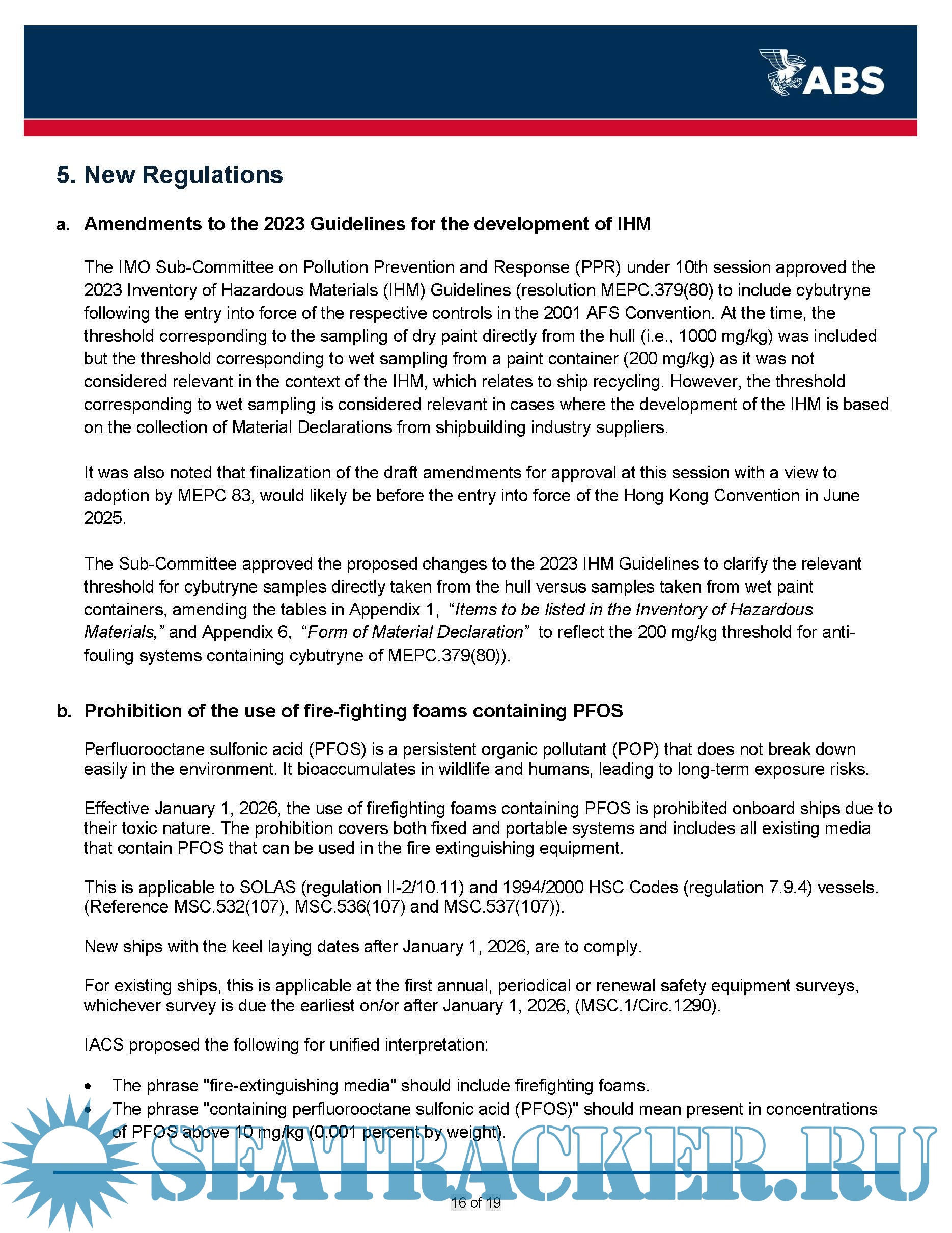 This reports are being made available to assist owners by providing awareness of potential areas of concern that have been identified on ABS classed vessels.