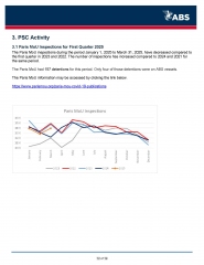 Description: This ABS Quarterly Report on Port State Control (PSC) provides information to owners on deficiencies identified on ABS vessels during inspections carried out by the various PSC regimes globally during the 1st quarter of 2025.