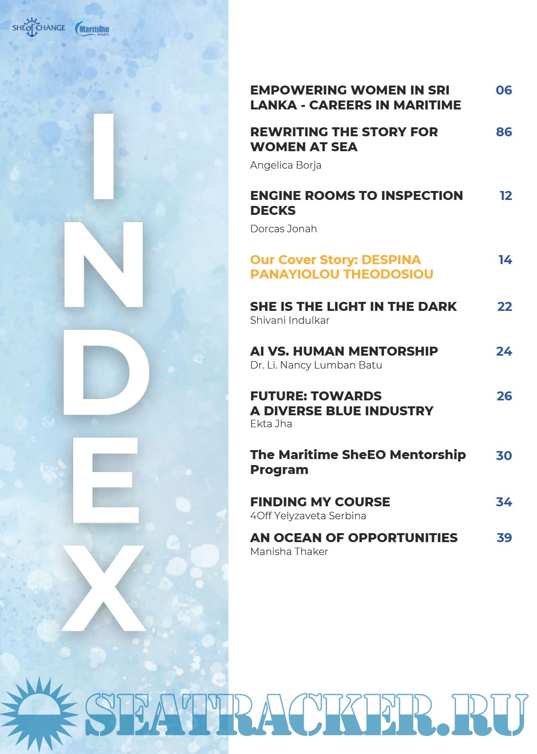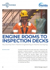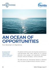 Our feature story presents the remarkable maritime journey of Despina Panayiolou Theodosiou, serving as a beacon of inspiration and encouragement for young women in the maritime industry. We also invite you to read Dr. Li Nancy Lumban Batu’s article discussing the impact of AI in comparison to Human Mentorship. Additionally, we recommend examining a progressive viewpoint on a diverse blue industry shared by Ekta Jha. Furthermore, Dorcas Jonah's transition from the engine room to inspection decks exemplifies a motivating and inspiring journey. Another significant article highlights Angelica Borja, a Maritime SheEO ambassador, who confronts the challenges faced by women in the maritime sector, particularly the pressures to conform to male-dominated standards while advocating for their acceptance and unique growth.