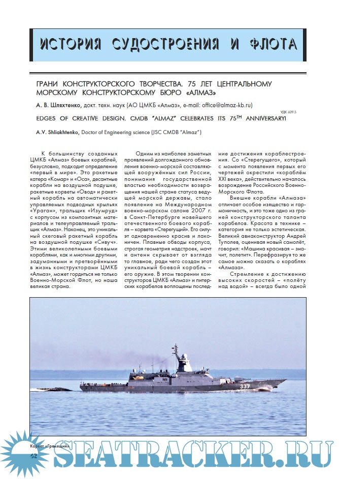 Описание: В журнале публикуются статьи ученых и специалистов на темы, связанные с проектированием, постройкой, ремонтом, модернизацией и утилизацией военных кораблей, гражданских судов. Регулярно выходят в свет работы, посвященные организации и технологии судостроительного производства, проектированию верфей и доков, новым судостроительным материалам. Большое внимание уделяется вопросам судовой энергетики и новым разработкам в области морской техники.