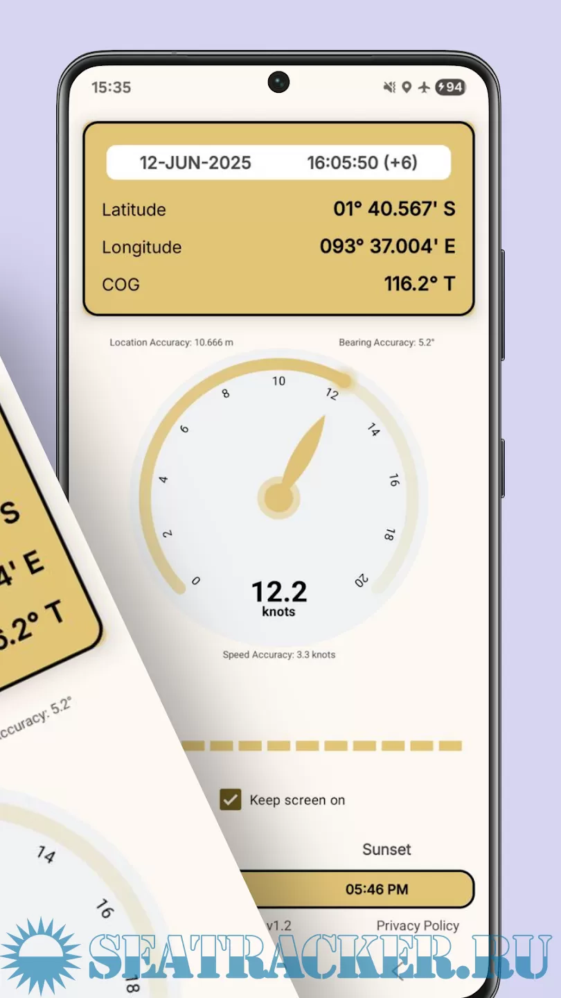 Year: 2025 Version: 3.1.1 Developer: A.S.C Platform: Android 64-bit OS compatibility: yes System Requirements: Requires Android 12 and up. Localization: English Crack: N/A Description: Mariner GPS is a lightweight, offline-first tool designed for seafarers providing: • Live GPS with precise coordinates display. • Course & Bearing See your Course Over Ground (COG) and smoothed bearing in degrees, filtered to eliminate jitter. • Smoothed Speed Raw GPS speed can jump wildly; our exponential smoothing algorithm delivers a rock-steady readout. • Sunrise & Sunset Times Instant access to today’s sunrise and sunset at your location—no extra downloads or data usage. • Auto-logging of GPS position and timestamps (local + GMT) • Map view showing your vessel’s heading • Offline No internet connection required. Works even in airplane mode. Simple. Reliable. Nautical. Additional info: What's new: - Minimizing app will not affect GPS functionality. - Added a check, to remind user if location services are off. - Bug fixes.