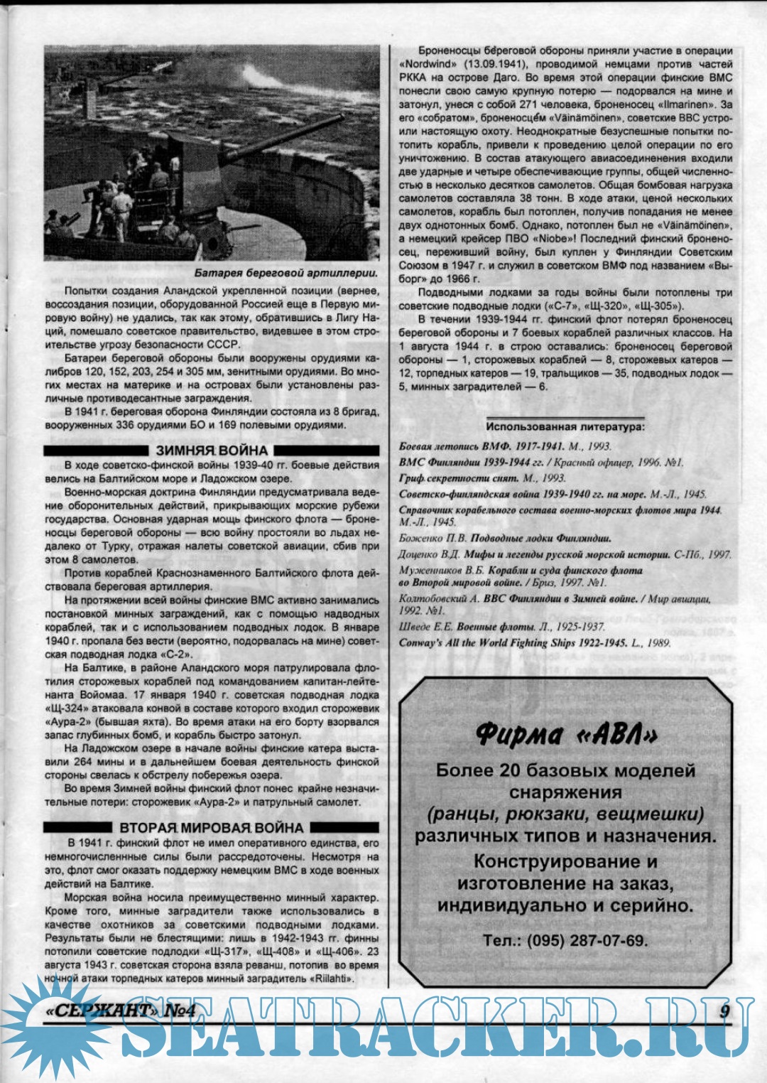 Описание: Журнал является независимым военно-историческим изданием. Издается с сентября 1996 года. Журнал "Сержант" сегодня - динамично развивающееся издание в России о военной истории. Журнал выходит 4 раза в год, помимо этого уже выходят тематические приложения к "Сержанту". В каждом номере вы найдете статьи, посвященные военной истории и униформе разных времен и народов. Большое количество цветных и чёрно-белых рисунков и фотографий. Печатает, в том числе - материалы по военно-морской тематике.