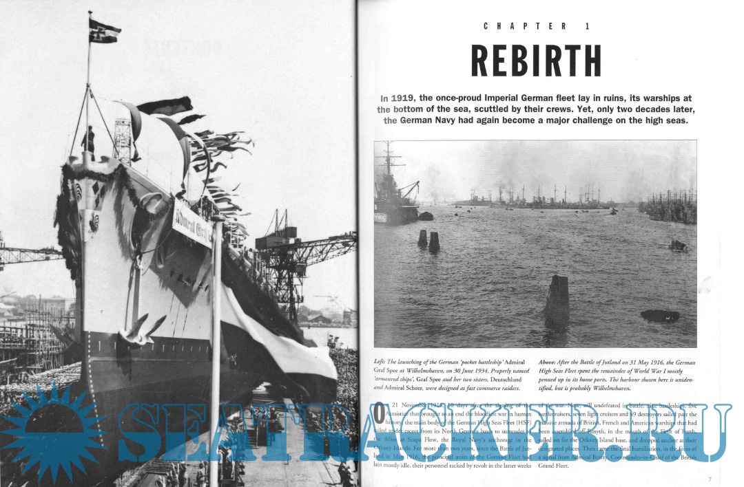 Description: This pictorial record explains the Kriegsmarines World War I roots and its rebuilding in contravention to the Treaty of Versailles before going on to examine the rebirth of the German U-boat fleet, the use of commerce raiders like the Atlantis and Komet, the naval campaigns in which the German navy participated, and Kriegsmarine leaders.