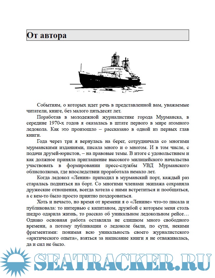 Год выпуска: 2023 Язык: Русский Автор: Валентина Веселовская Жанр: Историческое Издательство: Паулсен Формат: PDF Качество: Изначально компьютерное (eBook) Количество страниц: 95 Описание: Ледокольный флот и его неотъемлемая часть — атомные ледоколы — это прежде всего традиции. Сегодня, когда получило второе рождение российское судостроение, когда в составе атомного ледокольного флота появились атомоходы новых проектов, а в ледокольный флот пришли новые люди, эта книга как нельзя более актуальна. Среди атомных ледокол был ПЕРВЫЙ. Пионером мирового атомного флота является ледокол «Ленин», построенный в конце 50-х годов прошлого века. Он должен был удлинить сроки навигации по Северному морскому пути, обеспечивая бесперебойную проводку судов. Мало было построить – предстояло грамотно эксплуатировать эту уникальную машину, по ходу навигации решая технические проблемы и исправляя недочеты проектирования. Читатель получит редкую возможность не только узнать людей, посвятивших жизнь развитию арктической навигации, погрузиться в жизнь экипажа первого в мире надводного судна с ядерной энергетической установкой, но и проникнуться духом уникальной общности людей, сложившейся на ато