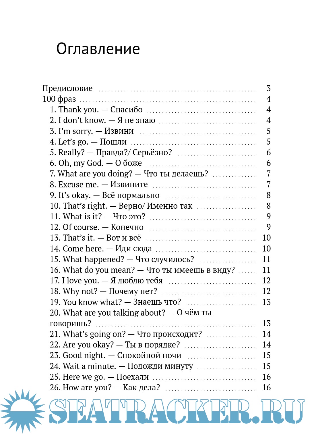 Описание: В книге собраны 100 самых популярных и полезных фраз, которые действительно пригодятся в реальной жизни: от простого «Спасибо» до вопросов вроде «Что ты делаешь?». Каждая фраза сопровождается короткими диалогами — они помогут понять, как и когда её использовать. Книга подойдет начинающим и тем, кто хочет освежить знания. Простые примеры, минимум грамматики — только практика!