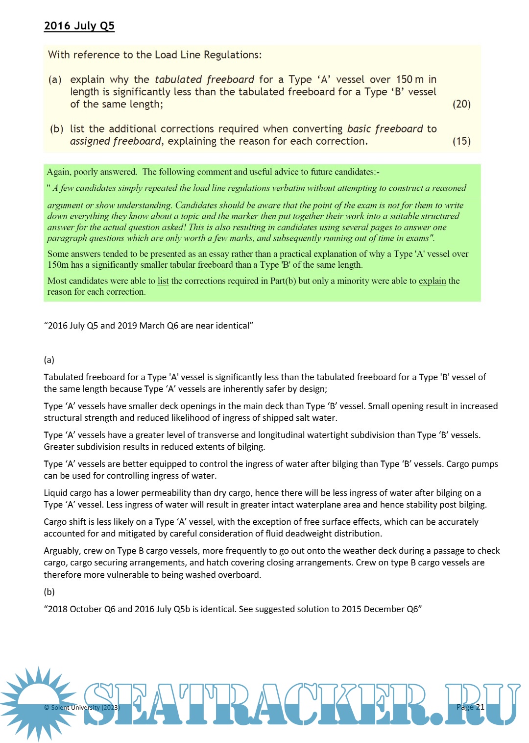 Year: 2023 Language: English Author: Warsash Maritime School Publisher: Solent University Version: 6 Format: PDF Quality: eBook Pages count: 177 Description: Stability and Structure Theory Questions, Marker Feedback & Sample Solutions from 2015 to 2023.