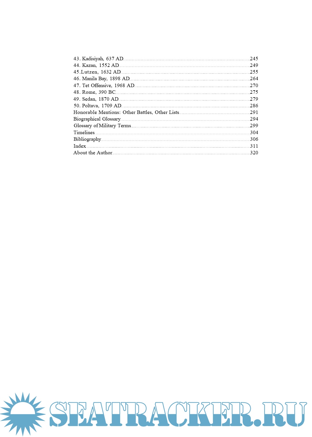 50 сражений, КОТОРЫЕ ИЗМЕНИЛИ МИР, смотря на столкновения, которые, по мнению автора, оказали самое глубокое влияние на всемирную историю. Перечисленные в порядке их актуальности для современного мира, они варьируются от древнего прошлого до наших дней и охватывают земной шар много раз...