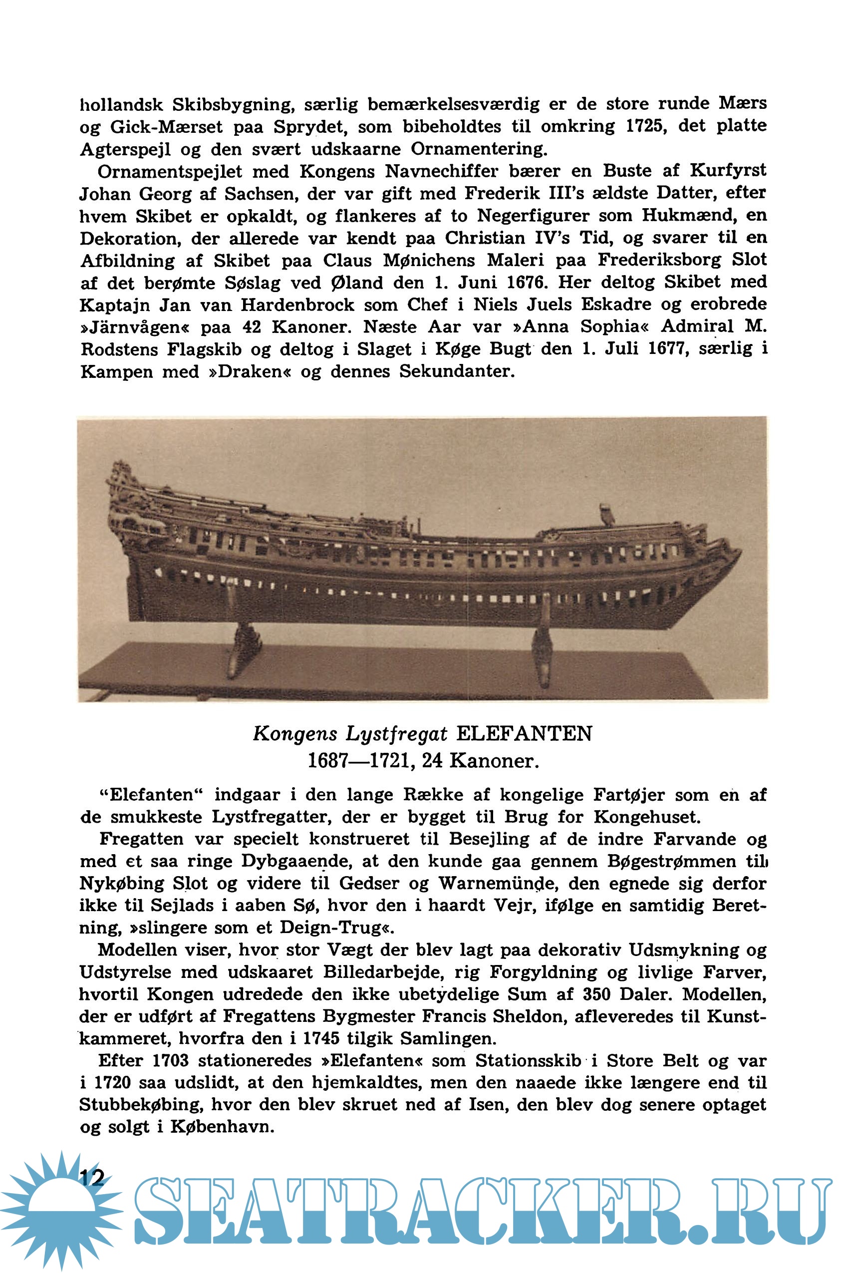 Year: 1939 Language: Danish Author: Holck P. Genre: Catalog Publisher: Flaadestationen København Format: PDF Quality: eBook Pages count: 53 Description: Den historiske Modelsamling paa Holmen blev oprettet i 1670, da Bygningen af danske Orlogsskibe;som hidtil for en væsentlig Del var foregaaet paa Værfter i Landets skovrigeste Egne, nu blev henlagt til Orlogsværftet paa Bremerholm. Fremstillingen af Skibsmodeller til Brug for Skibsbygningen i et bestemt Maalestoksforhold - de saakaldte Skalamodeller - var imidlertid ikke noget nyt, men kan fØlges lige saa langt tilbage i Tiden som Bygningen af egentlige Orlogsskibe. Modellerne blev forevist Kongen, forinden der blev taget Bestemmelse om de større Skibes Bygning, saaledes fik Kongen i 1555 paa Nyborg Slot tilsendt Modellen til den ny Orlogsbark, der skulde bygges i KØbenhavn, og i 1560 • blev der udset en dygtig Skibsbygger til at forfærdige en Model af Orlogsskibet sFortunae, 2 Alen lang med Rejsning og andet Tilbehør. Modellerne opbevaredes paa Landets Slotte til Efterretning for fremtidig Skibsbygning paa de nærliggende Værfter, indtil Chr. IV ved Bygningen af Frederiksborg Slot lod indrette en imponerende Modelsal - den kgl. Skibssal - i Slottets 3. Etage. Коллекция исторических моделей на острове Хольмен была основана в 1670 году, когда строительство датских военных кораблей, ранее осуществлявшееся преимущественно на верфях в самых лесистых районах страны, было перенесено на военно-морскую верфь в Бремерхольме. Производство моделей кораблей для использования в судостроении в определённом масштабе – так называемых масштабных моделей – было, однако, не новым, а восходит к строительству настоящих военных кораблей. Модели демонстрировались королю до принятия решений о строительстве более крупных кораблей. Так, в 1555 году король получил в замке Нюборг модель нового военного корабля, который должен был быть построен в Копенгагене, а в 1560 году был назначен квалифицированный судостроитель для создания модели военного корабля «Fortuna» длиной в 2 локтя с такелажем и другими принадлежностями. Модели хранились в замках страны в качестве образца для будущего судостроения на близлежащих верфях, пока король Кристиан IV при строительстве замка Фредериксборг не приказал построить на третьем этаже замка внушительный зал моделей — королевский корабельный зал.