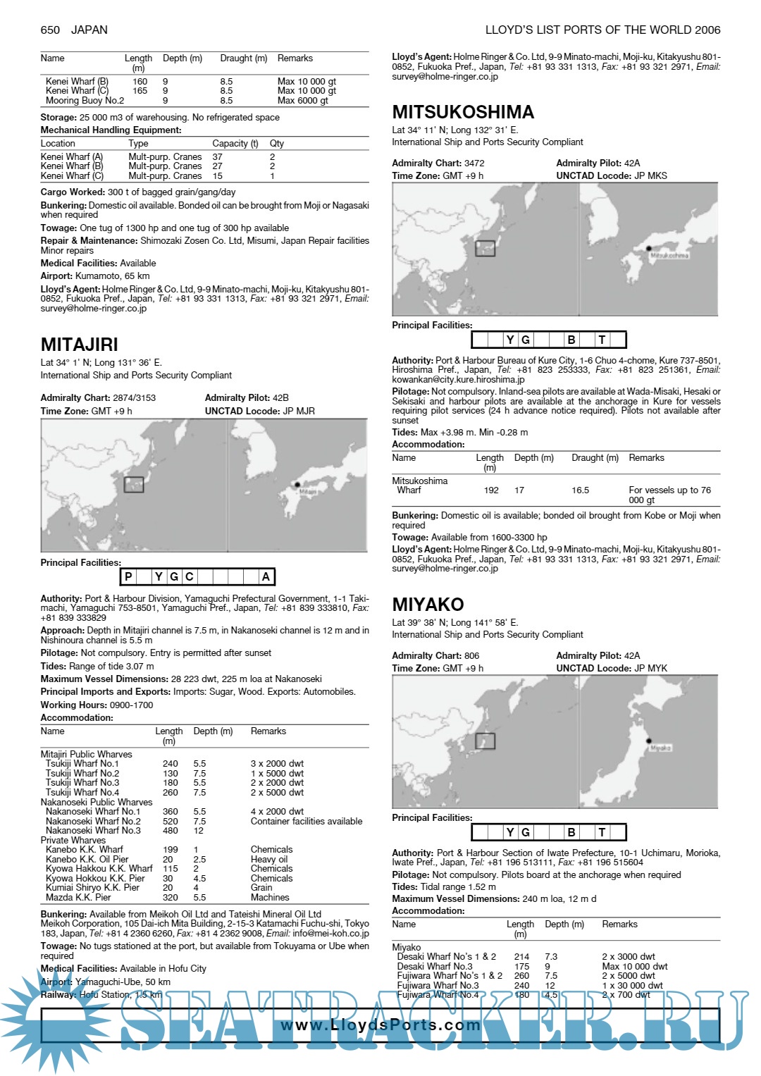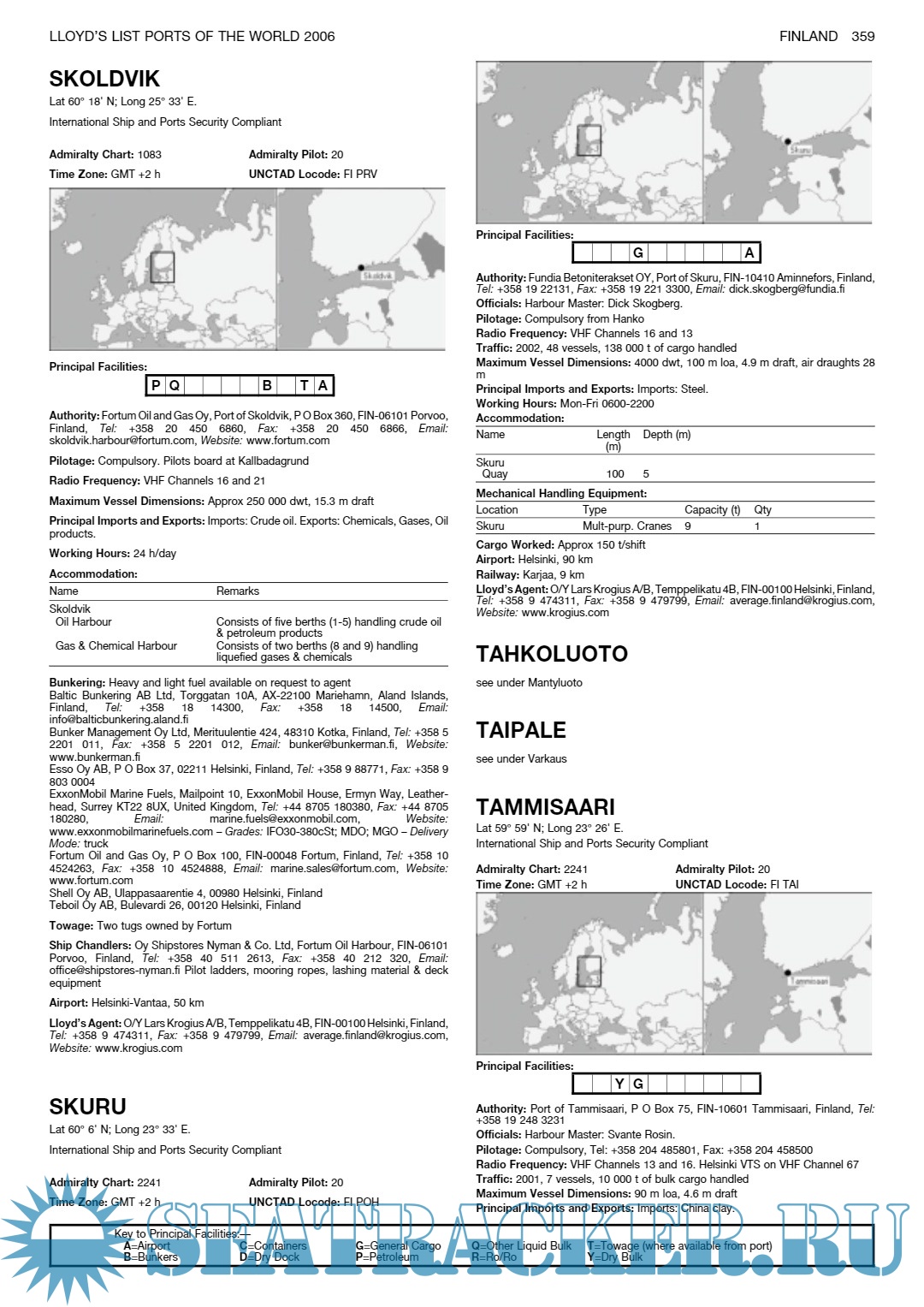 - Facts and statistics on ports, including: port co-ordinates, approach details, maps, principal facilities, anchorage, pilotage, radio frequency and much more