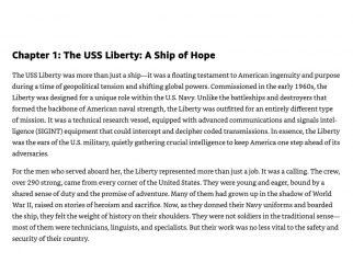 Equally compelling is the aftermath of the attack. Survivors reveal a shocking betrayal: a U.S. government cover-up prioritizing diplomatic relations with Israel over the lives of American sailors. The book explores President Lyndon B. Johnson’s calculated decisions, the silencing of survivors, and the systematic suppression of information, leaving the crew feeling abandoned by their own country.