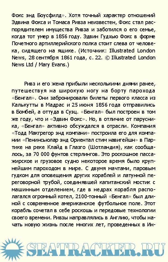 Описание: XIX век — время расширения империй, кровавой освободительной борьбы в колониях, глобализации и стремительного роста международной торговли. Что общего у столь масштабных событий и непримечательного парусника? В 1853 году в Калькутте был построен совершенно обычный корабль, которому было суждено войти в историю. «Эдвин Фокс» перевозил солдат, участвовавших в Крымской войне, наемных рабочих из Китая на Кубу, преступников со всей Британской империи в Австралию и даже замороженную баранину из Новой Зеландии в Англию. Парусник объединил судьбы людей разных национальностей, вероисповедования и цвета кожи. За полвека «Эдвин Фокс» совершил множество удивительных плаваний от Норвегии до Юго-Восточной Азии и стал символом глобализации. В ХХ веке захватывающие приключения корабля остались в прошлом, оборудование пришло в негодность, судно пестрело пробоинами. «Эдвин Фокс» стал угольным складом, его бросили гнить у причала. Теперь он обосновался в музее в Новой Зеландии и известен как старейший из сохранившихся торговых кораблей. Наблюдая с палубы морского судна за быстро менявшимся миром, вы совершите захватывающее путешествие по XIX столетию.