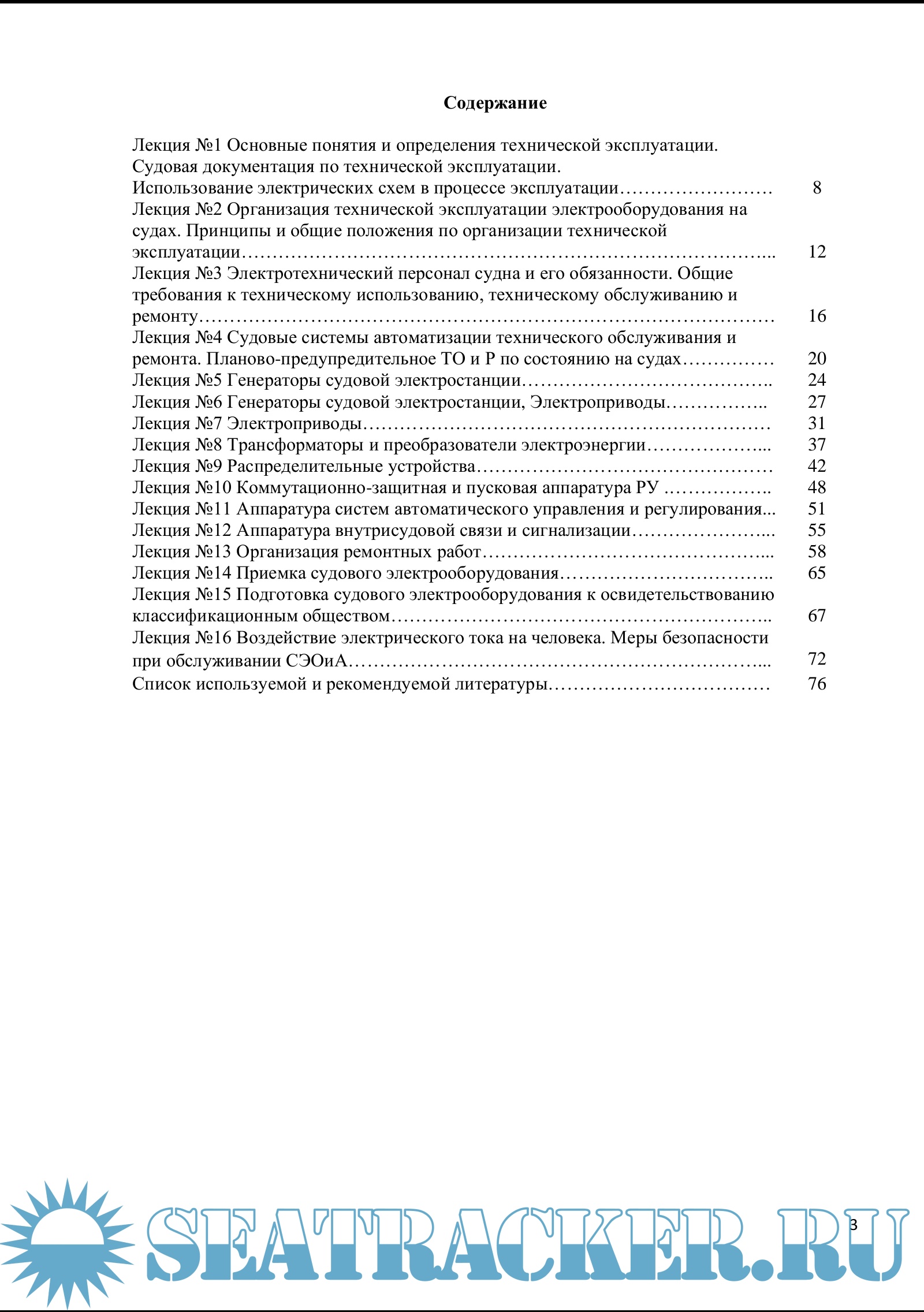 Год выпуска: 2025 Язык: Русский Автор: Бордюг А.С., Пласта О.А. Жанр: Курс лекций Издательство: Керчь: КГМТУ Формат: PDF Качество: Изначально компьютерное (eBook) Количество страниц: 76 Описание: Основные понятия и определения технической эксплуатации. Судовая документация по технической эксплуатации. Использование электрических схем в процессе эксплуатации. Организация технической эксплуатации электрооборудования на судах. Принципы и общие положения по организации технической эксплуатации. Электротехнический персонал судна и его обязанности. Общие требования к техническому использованию, техническому обслуживанию и ремонту. Судовые системы автоматизации технического обслуживания и ремонта. Планово-предупредительное ТО и Р по состоянию на судах. Генераторы судовой электростанции. Генераторы судовой электростанции, Электроприводы. Электроприводы. Трансформаторы и преобразователи электроэнергии. Распределительные устройства. Коммутационно-защитная и пусковая аппаратура РУ. Аппаратура систем автоматического управления и регулирования. Аппаратура внутрисудовой связи и сигнализации. Организация ремонтных работ. Приемка судового электрооборудования. Подготовка судового электрооборудования к освидетельствованию классификационным обществом. Воздействие электрического тока на человека. Меры безопасности при обслуживании СЭОиА. Список используемой и рекомендуемой литературы.