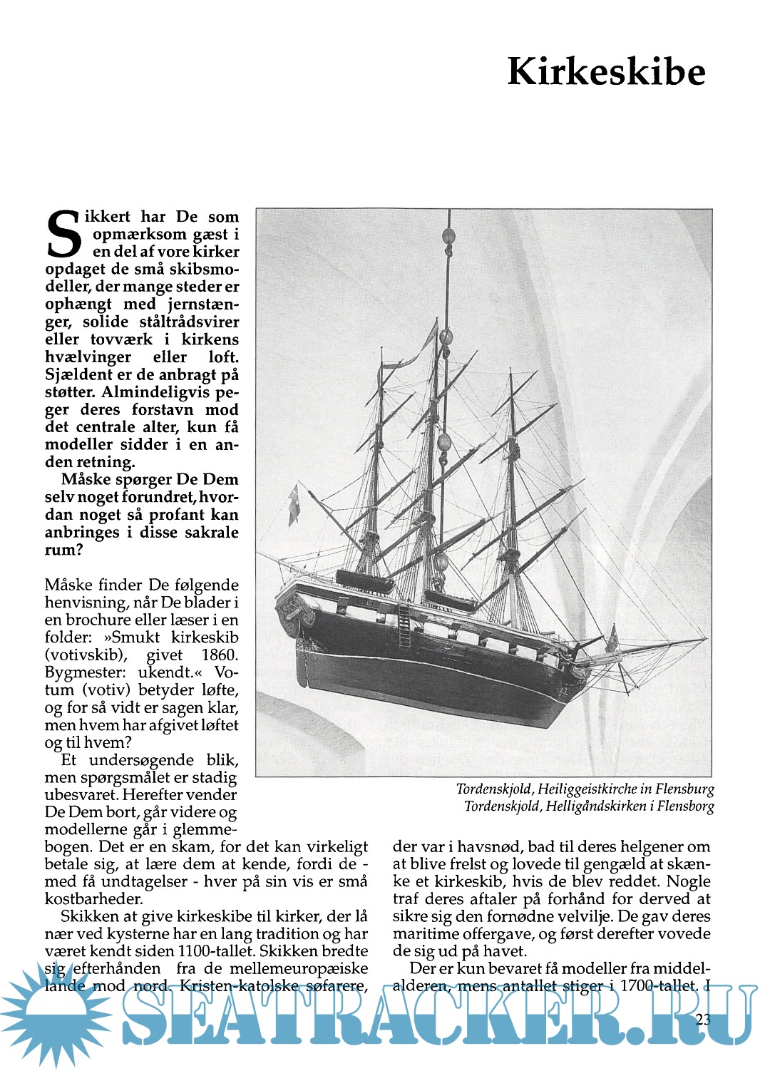 Description: Sicher werden Sie als aufm Kirchenbesucher in manchen Gotteshäuser kleine Schiffsmod entdeckt haben. Die meisten sind un Gewölben oder Decken an Eisenstangen, soliden Stahldrähten oder mit Tauwerk aufgehängt. Selten stehen sie auf Stützen. Im allgemeinen zeigen die Vorsteven zum zentralen Altar, nur wenige haben eine andere Richtung. Wahrscheinlich sind Sie erstaunt.